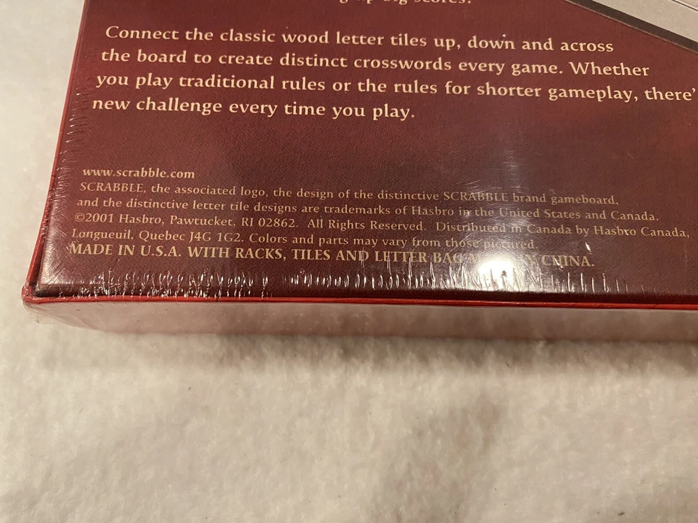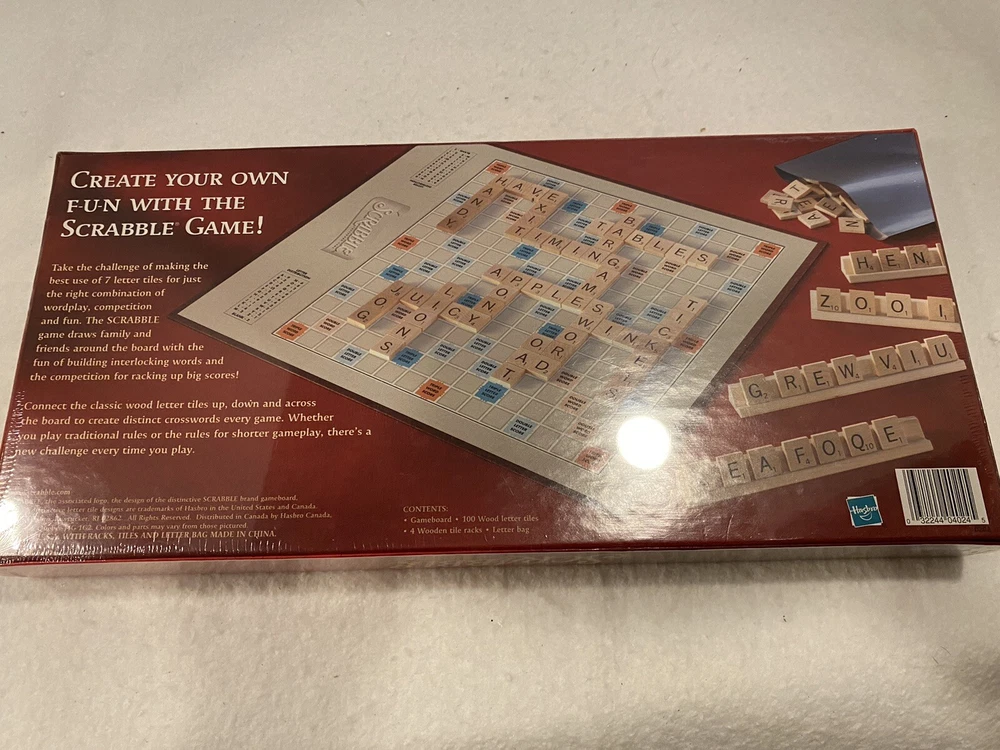 Character Family:ScrabbleGame Title:ScrabbleType:Game BoardRecommended Age Range:8 To AdultGame Type:Board GameTheme:LettersYear:2001Age Level:8-11 Years, 17 Years & Upgtin13:032244040245UPC:032244040245Brand:Parker BrothersMin. Number of Players:2 players