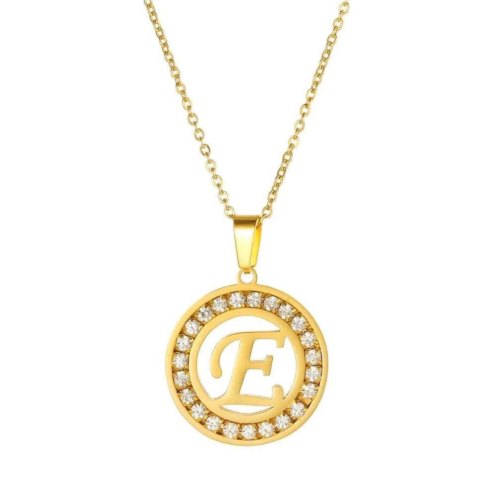 Fashion Gold Square Initial Letter Pendant Necklace, Bling Rhinestone Charm Gift