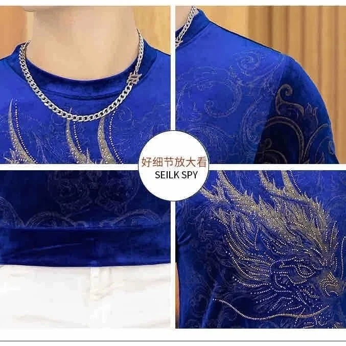 New Fashion Men Luxury Velvet Diamond Dragon Rhinestones Gold Fleece Long Sleeve FAST & FREE DELIVERY | GREAT PRICE | SECURE SHOP PING | HIGH QUALITY Please pay attention! Please strictly follow our size chart carefully to select your correct size. Do not select directly according to your habits. please notice our size is chinese size, it is 2 size smaller than Europe or US size,so please check the size suggestion carefully before buying! 1cm = 0.39inch Contact us & Feedback Customer satisfaction is very important to us. If you have any problem with your order, please contact us through eBay messages . We are here to assist you and resolve any issues that arise within 24 hours , so please give us a chance to do so prior to potentially posting any negative feedback. We'd like to be sure you are completely satisfied with your purchase. Payment Policy We give you a fast and secure PayPal Transaction. We also accept: VISA, MasterCard, American Express, Google Pay, Apple Pay, Discovery and many others. Highest safety and security standards are taken so you can feel safe. Shipping Policy All orders are typically processed and shipped within 3 business days. You will receive tracking information automatically uploaded once the item has been shipped. Return & Refund Policy If the item got defects or damaged we provide refund ( 100% moneyback guarantee service) If you have a problem with the item you have got please let us know within a week. It must be returned the item within 30 days after the delivery. Please feel free to contact us via eBay messages if you have any problem with the item without opening a case on the site. We contact you within 24 hours and do our best to help you out! Thank you for shopping with us!
