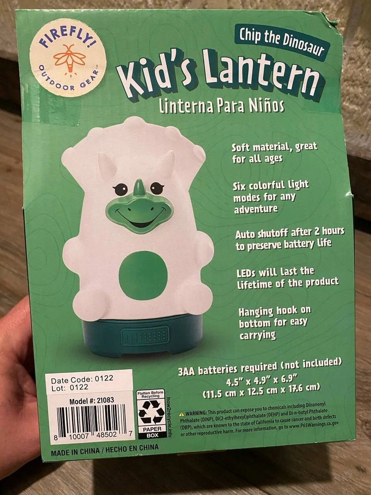 Item Weight:Approx 9 ozCord Type:CordlessBrand:FireflyNumber of Batteries:3Operating Range:Does not sayBattery Technology:AACountry/Region of Manufacture:ChinaMaterial:PlasticLighting Technology:Multi-colored LEDsPower Source:3 AA Batteries (not included)Custom Bundle:Nogtin13:810007485027Voltage:Does not sayModel:21083Color:White and GreenMPN:Does not applyUPC:810007485027Item Width:4.5" x 4.9" x 6.9"Type:LanternBattery Included:NoItem Length:4.5" x 4.9" x 6.9"Item Height:4.5" x 4.9" x 6.9"