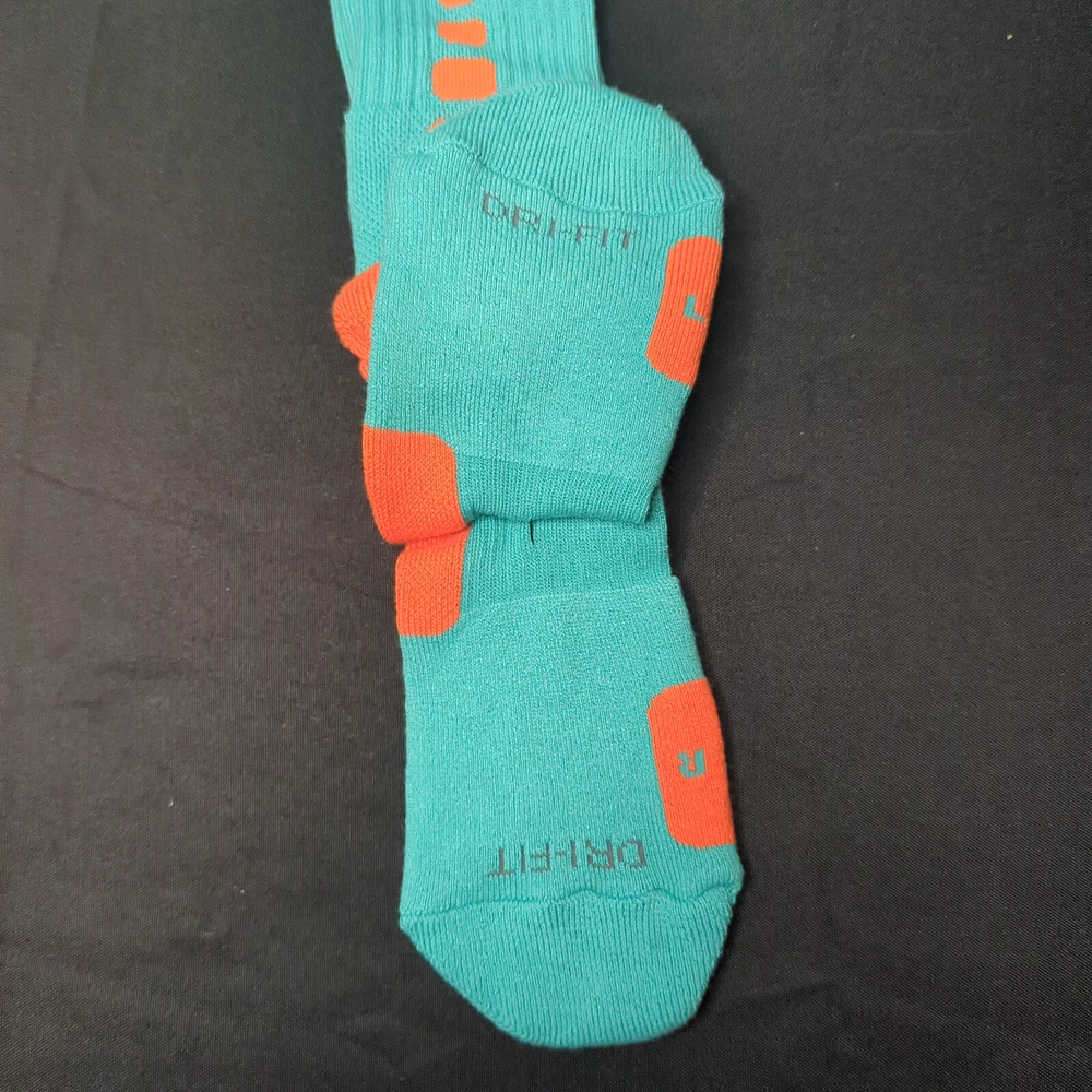 New Flawed Original & Hyper Nike Elite Socks Flaws are shown close up, if you need more pictures send me a message The flaws are cosmetic and don't affect performance. Some of the flaws will not even be noticeable with shoes on. The common flaws are the color of the elite stripe is lighter in the shown area, stitching errors, stains, and the "Dri-Fit" logo missing. Brand new without tags 100% Authentic I am constantly getting new colorways and restocking sold out colorways! If there is a certain colorway you're looking for, send me a message and let me know. Fast Shipping: Ships in 1-2 business days from Illinois Many colors available, check out my page to see them all Message me with any questions The Nike Elite Basketball Crew Socks feature Dri-Fit fabric that keeps your feet cool and comfortable. It’s made for durability and offers a supportive and snug fit. The Nike Elite Basketball Crew Sock is a must own for any basketball player. Perfect for basketball, volleyball, and other sports Pair different colorways with your Kobe's, Lebron's, KD's and more. Performance basketball crew socks deliver superior fit and comfort. Strategically placed cushioning absorbs impact Dri-Fit technology helps keep feet feeling dry and comfortable. Left/right anatomical design for targeted comfort. Ventilation zones promote breath-ability to keep you cool 63% polyester, 18% nylon, 16% cotton, 3% spandex Size Guide Small: Youth 4-6 Medium: Men's 6-8 Large: Men's 8-12 Extra Large: Men's 12-15