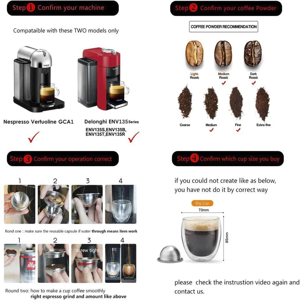 Product Description Features: Rich in fat and a delicate taste Can be filled with your favorite coffee powder Accepts finely ground coffee for a richer fat Reusable, environmentally friendly and cost-effective Specifications: Material: Stainless steel Coffee capacity: 230ml Grounds: 9g Suitable for NESPRESSO Vertuoline GCA1 Coffee Machine, for Delonghi ENV135 Coffee Machine Package includes: 1x Stainless steel capsule pod (metal cover) 1x Plastic brush 1x Tablespoon Shipping Returns Contact Us Payment 1. Items sent from US warehouse. 2.Receiving time = Processing time + Shipping time 3. Processing Time: Around 1-2 business Days 4. Shipping Time: 3-5 business day it may have a little delay during some holiday (such as Christmas),any problem ,please feel free to contact 1. 30 days warranty from the purchased date. Please contact us via email before returning the defective item. 2.Our warranty does not extended to any product that are physically damaged or that are not under normal operating conditions as result of misuse or improper installation on the buyer/user's part. 3.Return items should include the original packaging and all accessories. buyers MUST contact us for the returning address. 4.In all cases, buyers pay shipping fees at their own cost to return products for exchange or refund. We will be responsible for the postage of replacements. Refund will be made upon receipt of the returned item. Pls contact us if you have any problems,we will try our best to solve for you We accept all verified payment from eBay. Shipping 1. Items sent from US warehouse. 2.Receiving time = Processing time + Shipping time 3. Processing Time: Around 1-2 business Days 4. Shipping Time: 3-5 business day it may have a little delay during some holiday (such as Christmas),any problem ,please feel free to contact Returns 1. 30 days warranty from the purchased date. Please contact us via email before returning the defective item. 2.Our warranty does not extended to any product that are physically damaged or that are not under normal operating conditions as result of misuse or improper installation on the buyer/user's part. 3.Return items should include the original packaging and all accessories. buyers MUST contact us for the returning address. 4.In all cases, buyers pay shipping fees at their own cost to return products for exchange or refund. We will be responsible for the postage of replacements. Refund will be made upon receipt of the returned item. Contact Us Pls contact us if you have any problems,we will try our best to solve for you Payment We accept all verified payment from eBay. You may also like 10Pack Wholesale Fiber Optic Visual Fault Locator Repair Part 7mm Ceramic Tube S 9.85 USD 19.99 USD Portable Foldable Outdoor Sport Hiking Camping Dining Cushion Seat Mat Foam Pad; 9.25 USD 19.99 USD USB 3.0 to mSATA SSD External mSATA to USB 3.0 SSD Convertor Adapter Plug & Play 15.85 USD 19.99 USD Portable Air Inflator Adapter 1/4" NPT (M) to Standard for Schrader Valve (M) 12.55 USD 19.99 USD Premium Brass Forklift Propane Tank Female Fitting Adapter Excellent Durability 18.25 USD 19.99 USD Camera Waist Belt Clip Quick Release Hanging Buckle Backpack Strap Mount Accs 19.85 USD 19.99 USD powered by