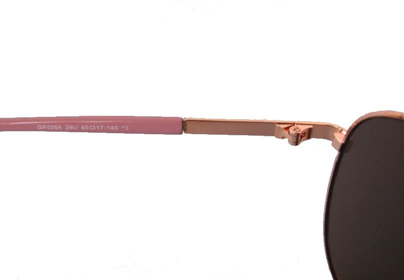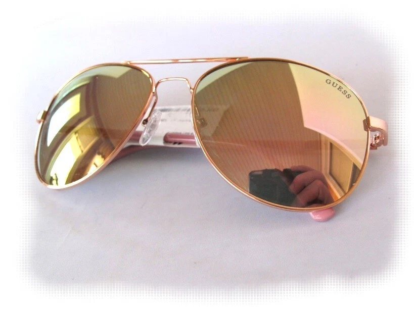 Guess Sunglasses *** New Authentic G UESS Co.*** --- Womens Sunglasses --- ---Generic Soft Pouch only included--- --- Model# GF0295 | 60-17-140mm --- --- Color: Rose Gold/Gold Mirror --- ***MSRP: $80.00*** 100% UV-blocking lenses Impact resistant C omfortable medium fit on your face Metal frame and arm temples COME WITH A Generic Pouch and SHIPPED WITH CARE Eye - 2-1/4" Bridge - 1/2" Vertical - 2" Temple Arm - 5-1/2" All of our listing items are authentic products All of our listing items are authentic products: we don't sell fake, imitated or 'inspired' products. Please have no doubt on this matter as we buy all from authorized importers or department stores. THANKS FOR LOOKING