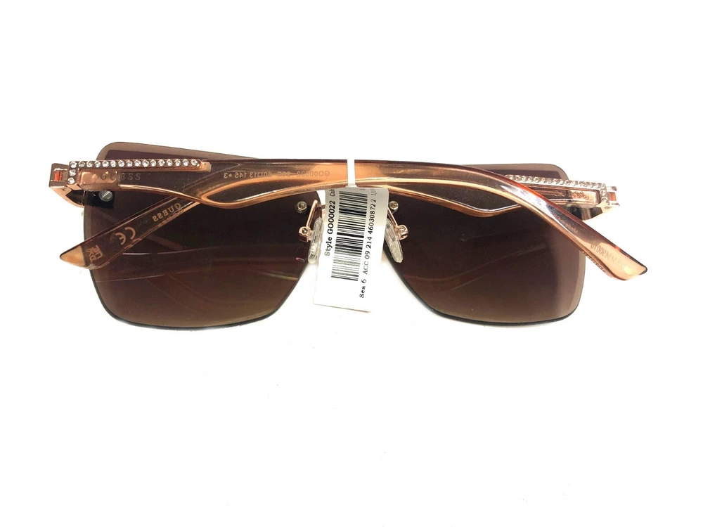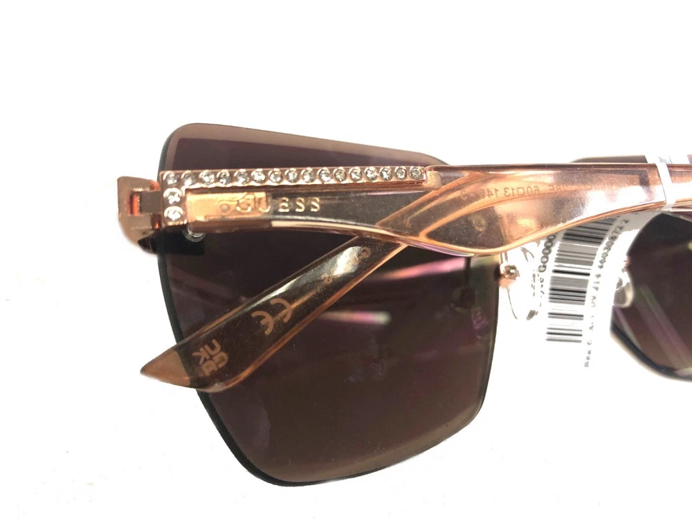 Guess Sunglasses *** New Authentic G UESS Co.*** --- Womens Sunglasses --- ---Generic Soft Pouch only included--- --- Model# GO00022 28F | 60-13-145mm --- --- Color: Rose Gold/Brown --- ***MSRP: $80.00*** 100% UV-blocking lenses Impact resistant C omfortable medium fit on your face Rimless frame and plastic temple arms COME WITH A Generic Pouch and SHIPPED WITH CARE Eye - 2-1/4" Bridge - 1/2" Vertical - 2" Temple Arm - 5-1/2" All of our listing items are authentic products All of our listing items are authentic products: we don't sell fake, imitated or 'inspired' products. Please have no doubt on this matter as we buy all from authorized importers or department stores. . THANKS FOR LOOKING