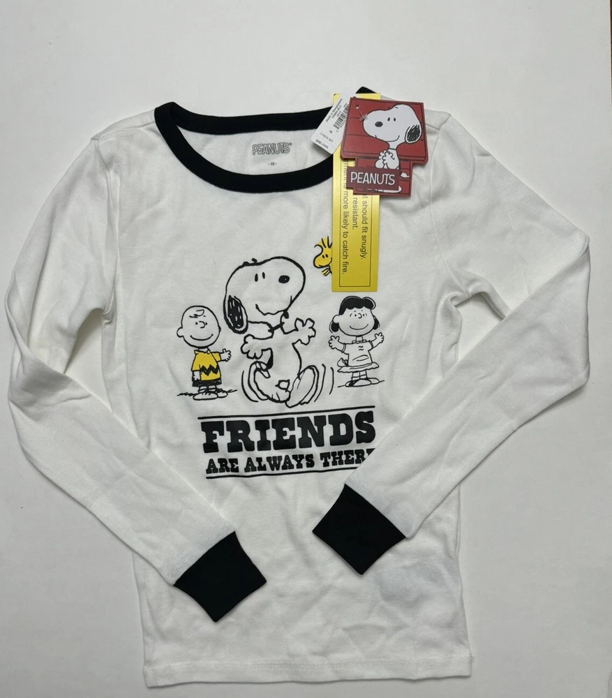 Get your little ones ready for bedtime with this adorable two-piece pajama set from Gap Kids. Featuring characters from the classic Peanuts cartoon series, this set includes a pullover top and matching pants. It is made from soft cotton knit fabric. The top features Snoopy, Lucy, Woodstock, and Charlie Brown. and the set is easy to care for with its machine washable garment care instructions. This unisex boys & girls kids' pajama set is available in size 10. "For child's safety, garment should fit snugly." Track Page Views With Auctiva's Counter