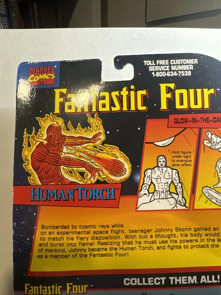 New Glow Toybiz 1994 Marvel Comics Fantastic Four Human Torch Action Figure OEM. Condition is New. Shipped with USPS Ground Advantage.