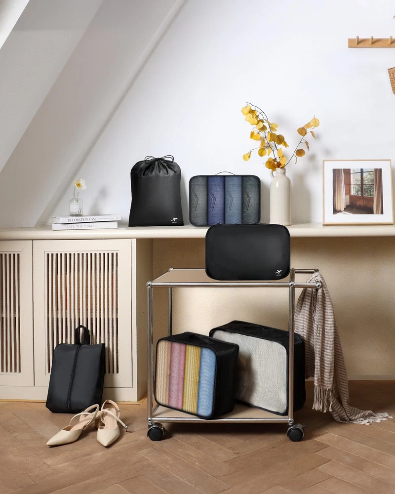 GET YOUR LUGGAGE WELL-ORGANIZED: With 6-piece travel packing organizers, packing is no more a chore for traveling. Just one set is enough for organizing all your travel essentials like clothes, shoes, underwear, and more, making your luggage neat and shipshape. They are not only cruise ship essentials but also ideal for every occasion, like family breaks, business travels, vacations, hiking, camping, RV trips, etc. VERSATILE & FLEXIBLE: travel cubes for packing feature 6 different sizes and styles of organizers for different items: 3 mesh bags, 1 shoe bag, 1 drawstring pocket, and 1 underwear bag. Moreover, these packing cubes can be used to stay organized at home, while traveling, and are perfect for camping or any outdoor adventure! You can easily fit them into your suitcases, totes, backpacks, duffel bag, etc. LIGHTWEIGHT & SPACE-SAVING: With the help of travel bags, you can maximize the space in the luggage, creating space for other stuff. In addition, the travel organizer bags for luggage are easy to store and carry. They are collapsible and can be folded flat when not in use. The 6-piece set weighs less than 1.0lb and won't add extra weight to your luggage. NEVER FORGET THE ESSENTIALS: Before using these packing cubes for carry-on suitcases, have you often forgotten one or two of your essentials with you when going out? Now it's time to say goodbye to carelessness! Let packing cubes help you to sort out all the travel must-haves and contain them in order! PREMIUM QUALITY: Featuring high-density and water-resistant fabric, these travel organizer bags for luggage can protect your clothes from wrinkles, stains, and moisture. On top of that, be rest assured that the metal zippers are built to last with frequent use. The widened 5mm two-way zippers slide smoothly without any jamming and snags.