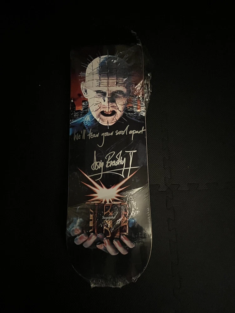 New Hellraiser Supreme Skateboard Signed By Hellraiser Himself Doug Bradley. Condition is New. Shipped with USPS Ground Advantage.