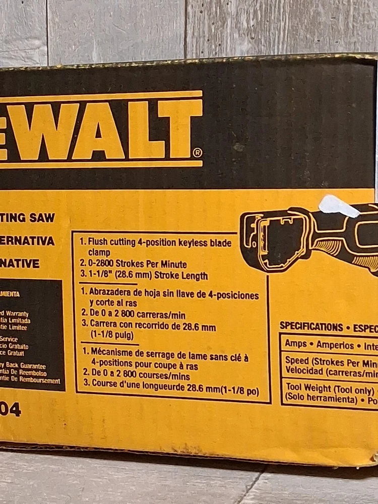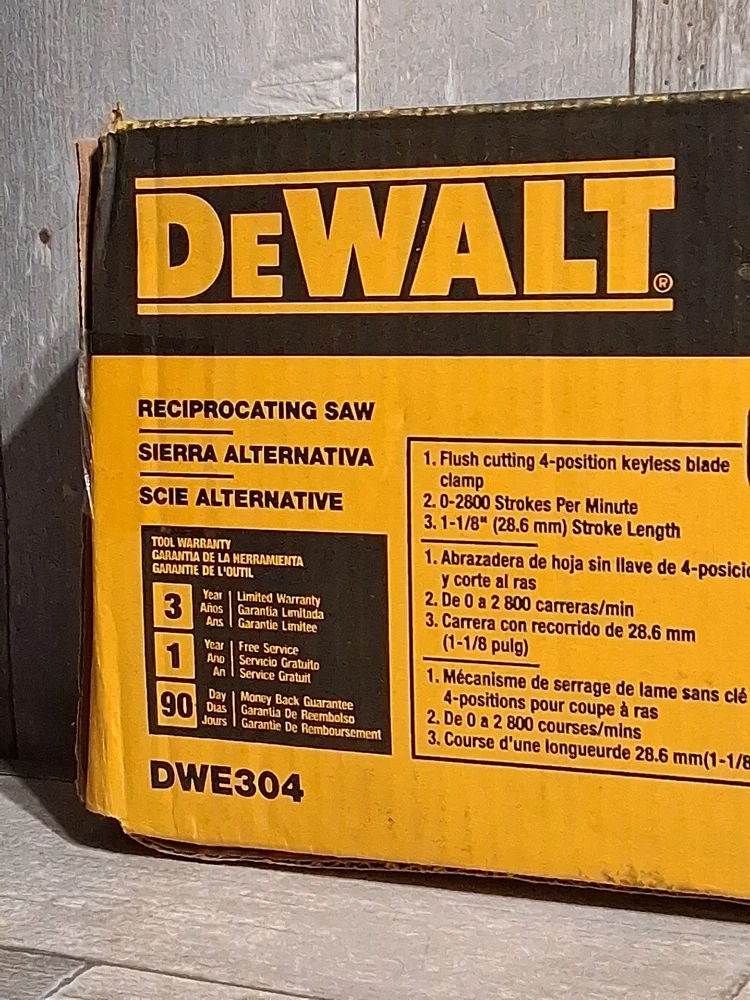 The Dewalt DWE304 Reciprocating Saw is a powerful 10 Amp corded tool designed for a variety of cutting tasks in the home and workshop. With the DEWALT brand known for its quality and durability, this model is sure to deliver precise and efficient cutting performance. The reciprocating saw design allows for easy handling and maneuverability, making it a versatile tool for DIY projects and professional tasks alike. Whether you're cutting through wood, plastic, or other materials, the Dewalt DWE304 is a reliable choice for any job.