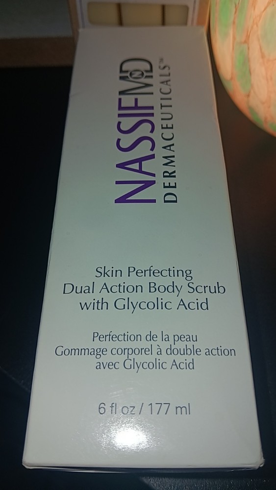 NEW IN BOX FULL SIZE NassifMD Dermascueticals Skin Perfecting Dual Action Body Scrub with Glycolic Acid 6 fl oz. Provence 3pck Lavender Natural Calming Bar Soap Set Bar Soap 5 oz each bar