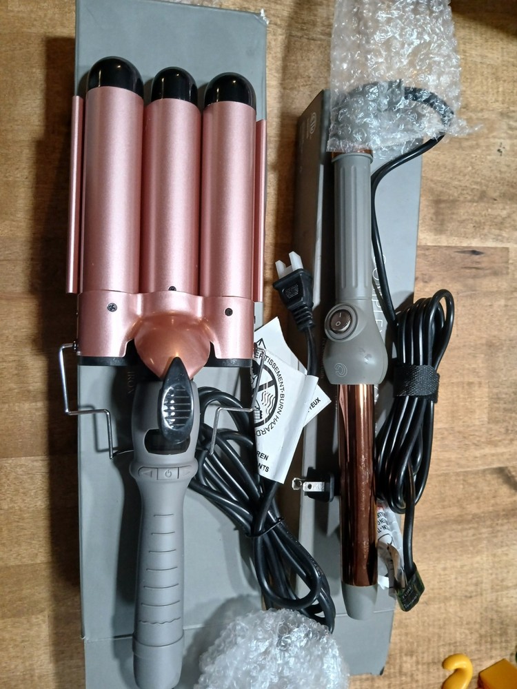 5 in 1 Wand Curling Iron, Hair Curling Wand Set with 3 Barrel Hair Crimper an...