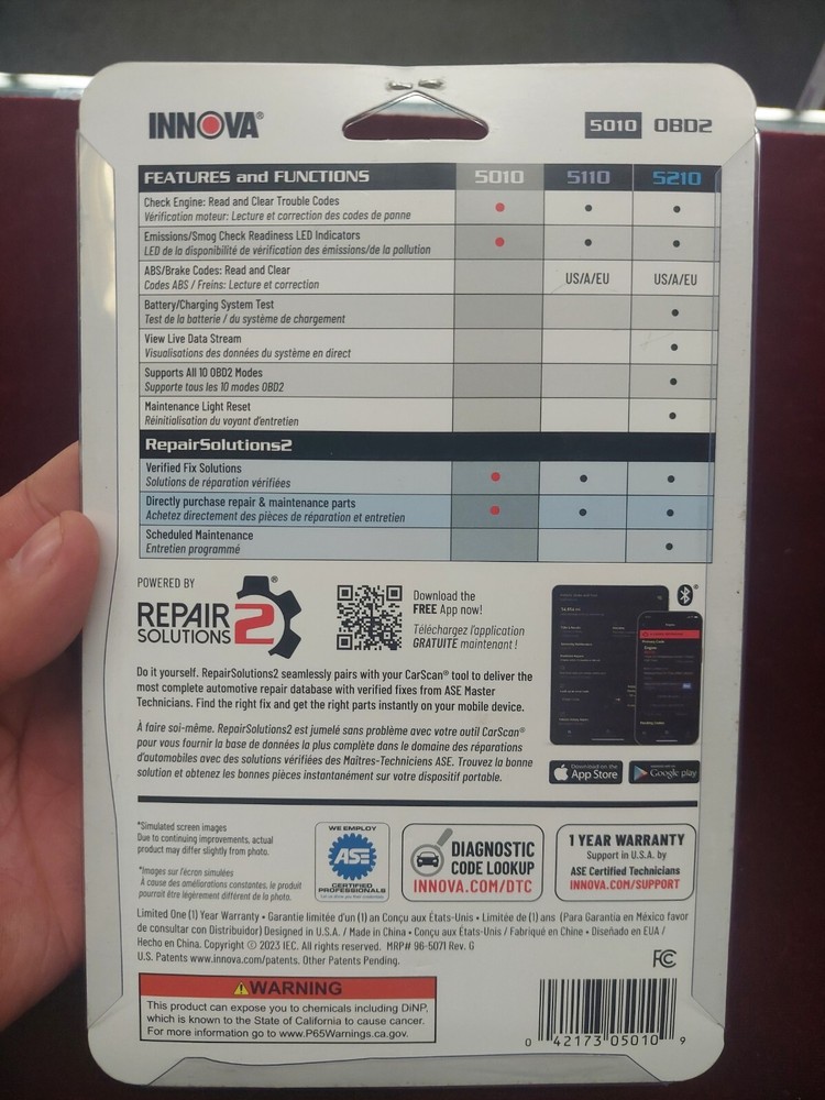 The Innova Car Scan 5010 Code Reader is brand new in the sealed packaged. It comes as shown in the pictures provided. NOTICE WE ONLY SHIP TO THE CONTINENTAL U.S.A.