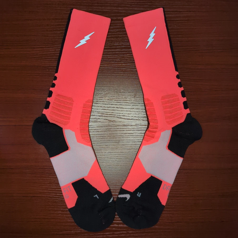 KD Nike Hyper Elite Socks Orange/Black Size Large Brand new without tags 100% Authentic Fast Shipping: Ships in 1-2 business days from Illinois Many colors available, check out my page to see them all Message me with any questions The Nike Elite Basketball Crew Socks feature Dri-Fit fabric that keeps your feet cool and comfortable. It’s made for durability and offers a supportive and snug fit. The Nike Elite Basketball Crew Sock is a must own for any basketball player. Perfect for basketball, volleyball, and other sports Pair different colorways with your Kobe's, Lebron's, KD's and more. Performance basketball crew socks deliver superior fit and comfort. Strategically placed cushioning absorbs impact Dri-Fit technology helps keep feet feeling dry and comfortable. Left/right anatomical design for targeted comfort. Ventilation zones promote breath-ability to keep you cool 63% polyester, 18% nylon, 16% cotton, 3% spandex Size Guide Small: Youth 4-6 Medium: Men's 6-8 Large: Men's 8-12 Extra Large: Men's 12-15
