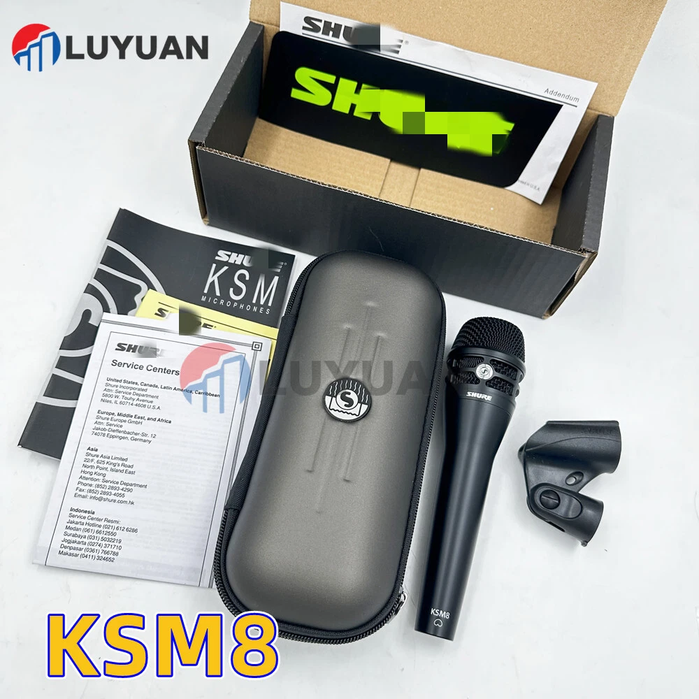 Product Description Specification: Model: KSM8/N Color: Black Type: Microphone Shure KSM8/N DualDyne Cardioid Dynamic Handheld Professional Vocal Microphone Features: As the first-ever dual-diaphragm handheld dynamic microphone, the premium KSM8 Dual dyne cardioid vocal dynamic microphone is a groundbreaking achievement in engineering. Vocal reproduction and sound enhancement control for world-class live performances in top professional venues. The KSM8's patented dual barrel features the purest cardioid polar pattern Shure has ever developed, virtually eliminating proximity effects and off-axis rejection, while giving sound professionals the signal clarity that typical condenser microphones don't need to process, and the reliability of feedback control from a dynamic microphone. Packing including: 1 * KSM8/N microphone 1 * Storage bag 1 * Clip 1 * Instruction manual Shipping Returns Contact Us Handling time may 1-2 working days after payment . We will ship as soon as possible.Delivery time is mainly based on the shipping carrier selected .Some remote area may be delayed . Please make sure your address on eBay is matched with your shipping address before you pay. You can track your package by clicking the tracking number which we uploaded to ebay . Return is accepted within 30 days after the buyer receiving the item. If you need return, let us know the detailed problem and send us some pictures for confirmation. Then get a address for return or refund . Please do not hesitate to CONTACT US. You can message 24/7 on eBay for all questions and inquiries. We will get back to you within 1-2 business days at the latest. Shipping Handling time may 1-2 working days after payment . We will ship as soon as possible.Delivery time is mainly based on the shipping carrier selected .Some remote area may be delayed . Please make sure your address on eBay is matched with your shipping address before you pay. You can track your package by clicking the tracking number which we uploaded to ebay . Returns Return is accepted within 30 days after the buyer receiving the item. If you need return, let us know the detailed problem and send us some pictures for confirmation. Then get a address for return or refund . Contact Us Please do not hesitate to CONTACT US. You can message 24/7 on eBay for all questions and inquiries. We will get back to you within 1-2 business days at the latest. powered by
