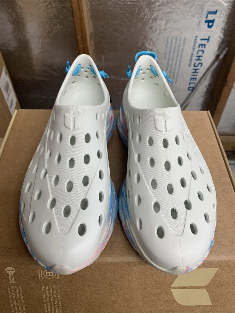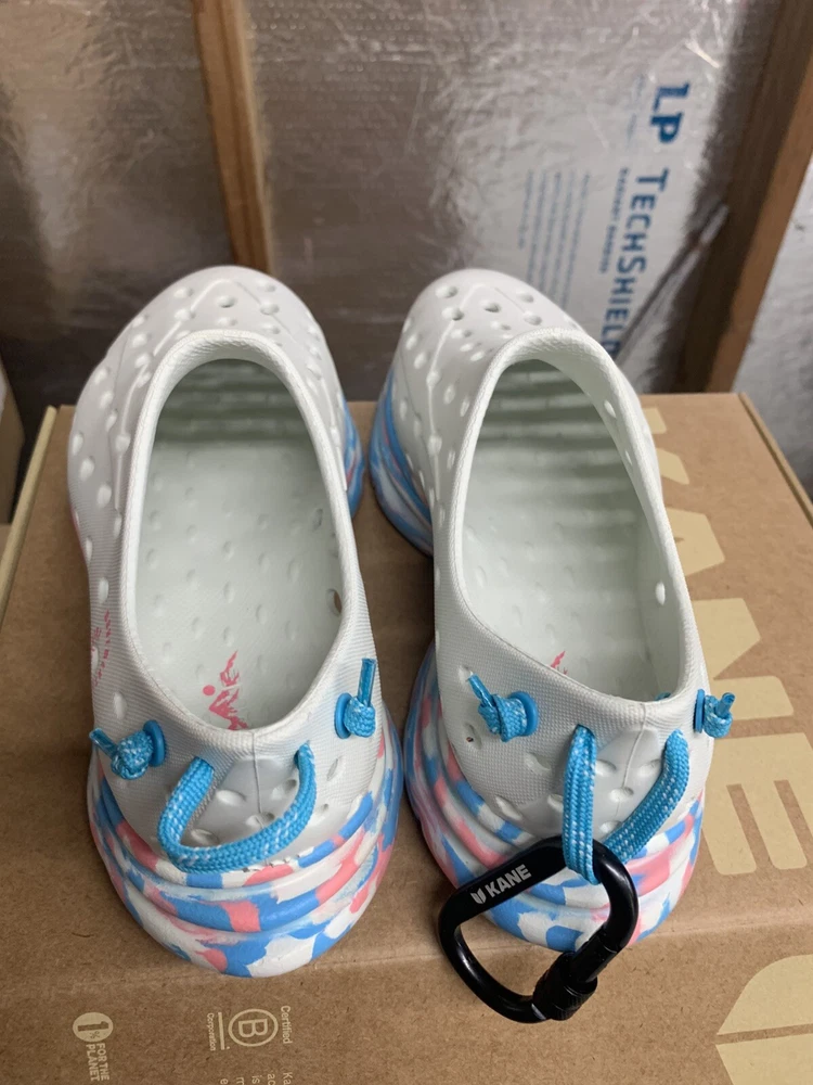 Brand new with box Men's size 6, Women's size 8 All sales are final, no returns Fast shipping! KANE Revive shoes are made of bio-based closed-cell RestoreFoam™. The shoes don’t absorb moisture, so they’re just as functional in water as they are on land, and they’re quick-drying. The KANE Revive shoes can easily be wiped or washed off with soap and water. Please avoid exposure to extreme heat or sun for this can cause the shoes to shrink or warp. Dishwashers, washing machines, or hot cars can also cause the shoes to shrink or warp. The KANE Revive sizing follows the standard sizing for a running shoe. Therefore, the size guide should be utilized according to your typical running shoe size. IN BETWEEN SIZES? We recommend sizing down (ex. if you typically wear size 10.5 - select size 10). For a wider foot, go one half size up (ex. if you typically wear size 10.5 - select size 11).