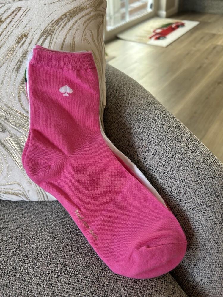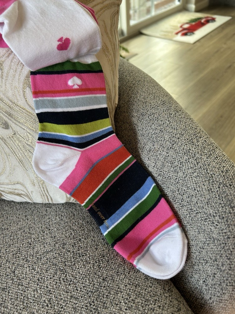 Elevate your everyday style with these colorful Kate Spade New York Shortie Crew Socks. Featuring a geometric pattern and full toe, these socks are perfect for walking and casual occasions. The semi-opaque, lightweight material is made from a polyester, spandex, and cotton blend, making them comfortable and machine washable. These socks come in a set of three pairs and are one size fits all. The mild compression level provides support, while the multicolor design adds a pop of color to any outfit. Ideal for all seasons, these socks are a must-have for any fashion-forward woman. Thank you!