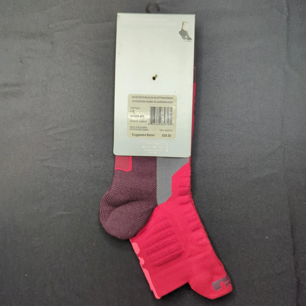 Nike Hyper Elite Quarter Cut Socks Size Large Red/Hyper Pink Brand new with tags 100% Authentic Fast Shipping: Ships in 1-2 business days from Illinois Many colors available, check out my page to see them all Message me with any questions The Nike Elite Basketball Crew Socks feature Dri-Fit fabric that keeps your feet cool and comfortable. It’s made for durability and offers a supportive and snug fit. The Nike Elite Basketball Crew Sock is a must own for any basketball player. Perfect for basketball, volleyball, and other sports Pair different colorways with your Kobe's, Lebron's, KD's and more. Performance basketball crew socks deliver superior fit and comfort. Strategically placed cushioning absorbs impact Dri-Fit technology helps keep feet feeling dry and comfortable. Left/right anatomical design for targeted comfort. Ventilation zones promote breath-ability to keep you cool 63% polyester, 18% nylon, 16% cotton, 3% spandex Size Guide Small: Youth 4-6 Medium: Men's 6-8 Large: Men's 8-12 Extra Large: Men's 12-15