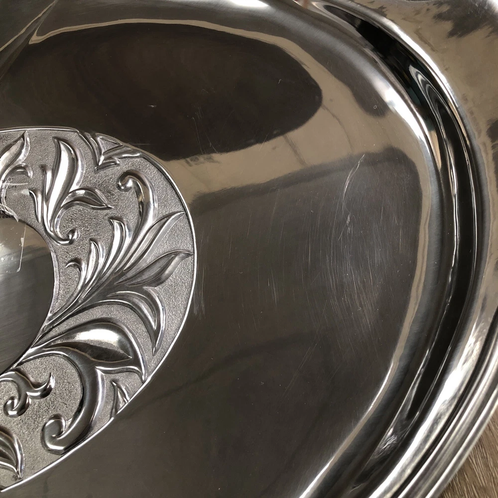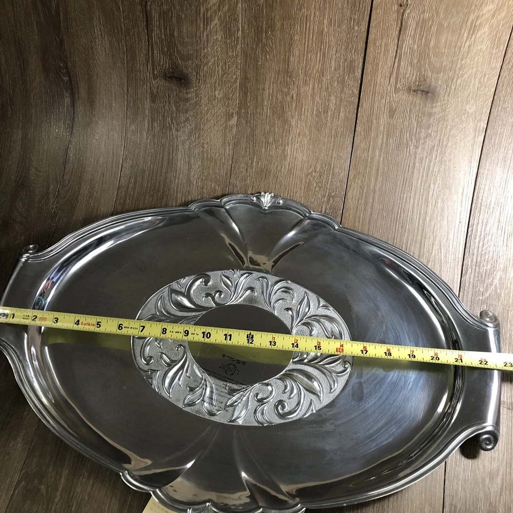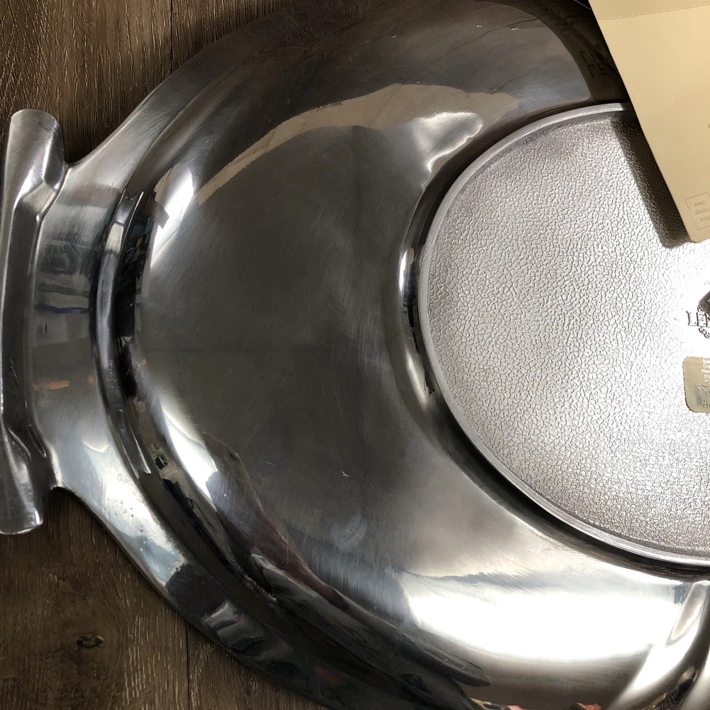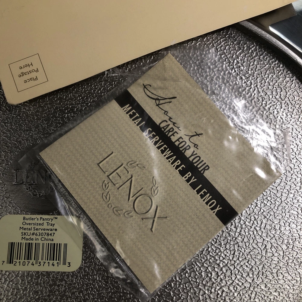 New Lenox Large Metal Serveware Butler's Pantry Oversized Tray By our observations this tray is in new condition. It does have some areas of scratches from being stored. It measures approx 22 1/2 inches in length and 15 1/2 inches in width. Please see pictures for information. We are a thrift shop located in Peachtree City, Georgia and all of our profits are returned to our community. We make every effort to test all electronic equipment that we receive and closely examine everything else which we will describe in detail if needed. If you have any questions, please message us directly and we would be more than happy to answer any of them.