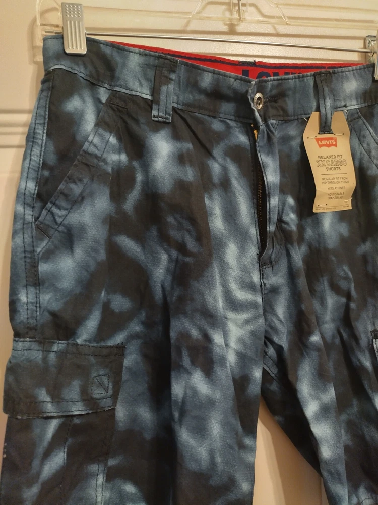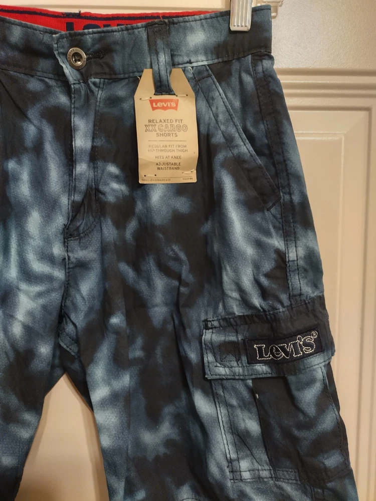 Hello, I have some new Levi's cargo shorts available. Size 14, relaxed fit with an adjustable waistband. About 8 inches on the inseam & a little over 17 inches top to bottom. Blue in color. Ready to be shipped. Thank you for viewing! This is the actual item you will be receiving.