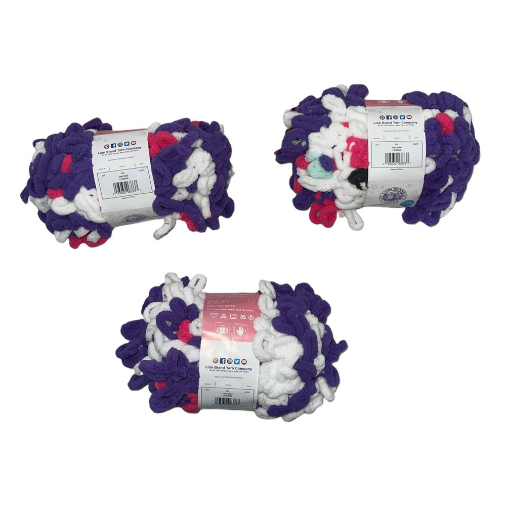 Features: • Brand: Lion Brand • Type: Yarn • Style: Off the Hook • Line: Magic Unicorn • Color: #504, Purple, Pink, White • Pattern: Solid • Made in China • Care: Machine Wash • Number of Skeins: 3 • Weight: 7 Jumbo • Net Weight: 3.3 Oz, 95 Grams • Material: 100% Polyester • Condition: NWT, Brand New • Other: Afgan, Throw, Crochet, Crochet, Craft Orders are shipped within 1-2 business days. 0113027002