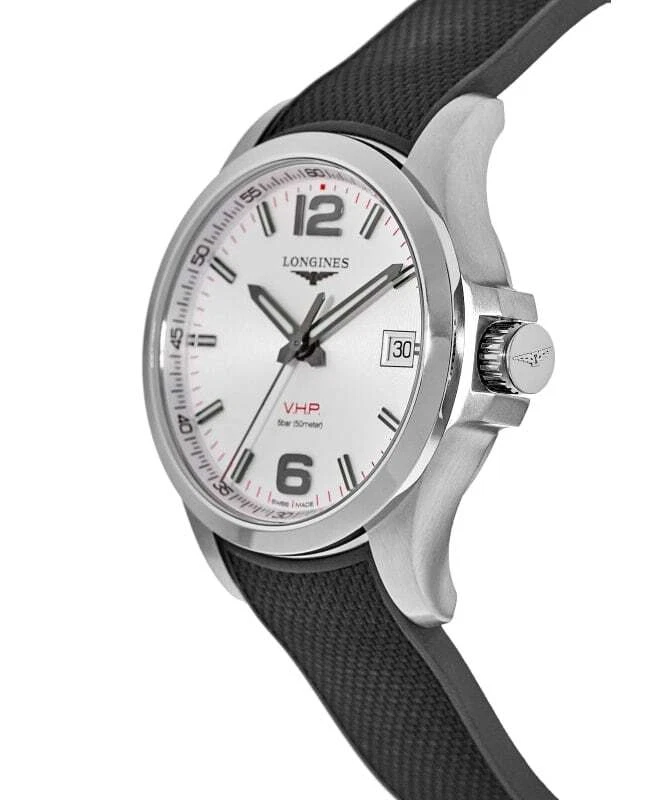 Longines Conquest V.H.P. Silver Dial Black Rubber Strap Men's Watch L3.726.4.76.9 100% Brand New & Authentic Product Shipped Within 1 Day Top Seller Reviews speak for themselves Click to view Shop risk free with WatchMaxx Money Back Guarantee 2 Year Warranty Usually ships within 1 business day of receiving payment. We accept PayPal. For other payment options please contact us. Details Warranty Return Policy Shipping & Tax About Us Questions? Product Details Case Case Material Stainless Steel Case Description Brushed and Polished Stainless Steel Case Finish Brushed and Polished Case Shape Round Case Diameter 43mm Case Back Solid Bezel Smooth Crystal Scratch Resistant Sapphire Crown Push-Pull Dial Dial Color Silver Dial Description Luminous Grey Hands and Arabic Numeral/Stick Hour Markers with Minute Markers Around the Outer Rim, and the Date at 3 o'clock on a Silver Dial Dial Markers Stick Hand Color Grey Sub-Dials Date Calendar Date at 3 o'clock Functions Hour, Minute, Second, Date and Battery End Of Life Indicator Movement Movement Type Battery Operated Quartz Engine V.H.P. Very High Precision Movement Description Swiss Quartz Band Band Material Rubber Band Color Black Band Description Black Rubber Strap Band Type Strap Clasp Type Deployment with Push Button Clasp Description Brushed and Polished Stainless Steel Additional Information Water Resistant 50 Meters - 165 Feet Style Fashion Warranty 2 Year WatchMaxx Warranty Additional Info Also known as L37264769 Brand New 100% Authentic Longines Conquest V.H.P. Silver Dial Black Rubber Strap Men's Fashion Watch Model L3.726.4.76.9. Brushed and Polished Stainless Steel case with Black Rubber Strap . Brushed and Polished Stainless Steel Deployment with Push Button clasp. Smooth bezel. Dial description: Luminous Grey Hands and Arabic Numeral/Stick Hour Markers with Minute Markers Around the Outer Rim, and the Date at 3 o'clock on a Silver Dial. Swiss Quartz movement. Calendar: Date at 3 o'clock. Chronograph sub-dials display: Date. Powered by V.H.P. Very High Precision engine. Watch functions: Hour, Minute, Second, Date, Battery End Of Life Indicator. Push-Pull crown. Scratch Resistant Sapphire crystal. Round case shape. Case size: 43mm. Solid case back. 50 Meters - 165 Feet water resistant. 2 year WatchMaxx warranty. Warranty The length of the warranty period for all items are specified in the item details, and are guaranteed from the date of purchase. Warranty covers only defects in manufacturing or materials, movement, and battery replacement. Warranty excludes scratches or changes to the finish, damage to the glass, crystal, crown, stem, case, strap, or bracelet. Damage caused by excessive wear-and-tear and/or physical abuse, or resulting from wear under conditions exceeding the manufacturer's water resistance limitations is excluded from the warranty. WatchMaxx will repair the product, including the cost of all parts and labor during the warranty period. WatchMaxx will return the repaired or replacement item at no charge to the customer. Warranty return parcels must be clearly labeled with a return authorization number obtained by contacting WatchMaxx customer service. Parcels without a clearly visible valid return authorization number will be refused. Goods must be returned via a traceable carrier, such as FedEx, United Parcel Service (UPS) or the United States Postal Service (USPS), with insurance and delivery prepaid by the purchaser. Parcels shipped collect will be refused. The customer is liable for loss or damage in transit. WatchMaxx disclaims any liability for consequential or incidental damages for breach of written or implied warranty of this item, including merchantability or fitness for a particular purpose. This warranty gives you specific legal rights and you may have other rights that vary from state to state. Some states do not allow the exclusion or limitation of incidental or consequential damages, so the above limitation may not apply to you. Return Policy After receiving the item, contact seller within: 30 days. Refund will be given as: Money back. Return shipping: Seller pays return shipping. All items purchased from WatchMaxx may be returned with the following conditions, except those marked as "Final Sale": Merchandise must be returned within 30 days of receipt, in original, unused condition with all original tape, plastic protectors, and stickers intact and having never been removed. All returned items, whether for refund, repair or exchange, must be clearly labeled with a return authorization number obtained by contacting WatchMaxx customer service via email to WatchMaxx. Parcels without a clearly visible valid return authorization number will be refused. Goods must be returned via a traceable carrier, such as FedEx, United Parcel Service (UPS) or the United States Postal Service (USPS), with insurance and delivery to WatchMaxx prepaid by the purchaser. Parcels shipped collect will be refused. The customer is liable for loss or damage in transit. Refund of the purchase price will be issued in the same form as payment received. WatchMaxx policy is to attempt to contact the purchaser for 3 business days to resolve delivery problems or if delivery was refused. After 3 business days, such items will be regarded as returned and eligible for refund subject to the conditions above. Shipping in the USA Expedited Shipping & Insurance Free Next Day Air Shipping & Insurance $15.00 Sales Tax Taxes may be applicable at checkout. Please refer to eBay policies. International Shipping We offer a flat shipping & insurance charge of $49.99 per order. We ship via expedited shipping that usually arrives within 2-4 days. For shipping to Russia, allow up to two weeks for delivery (USPS does not guarantee delivery times). WatchMaxx charges only for the product and shipping to international delivery destinations. The shipping documents and invoice will show the actual purchase price according to local and international law. Any duties or