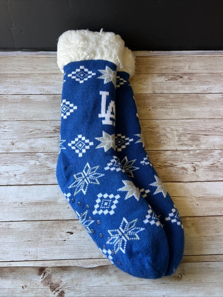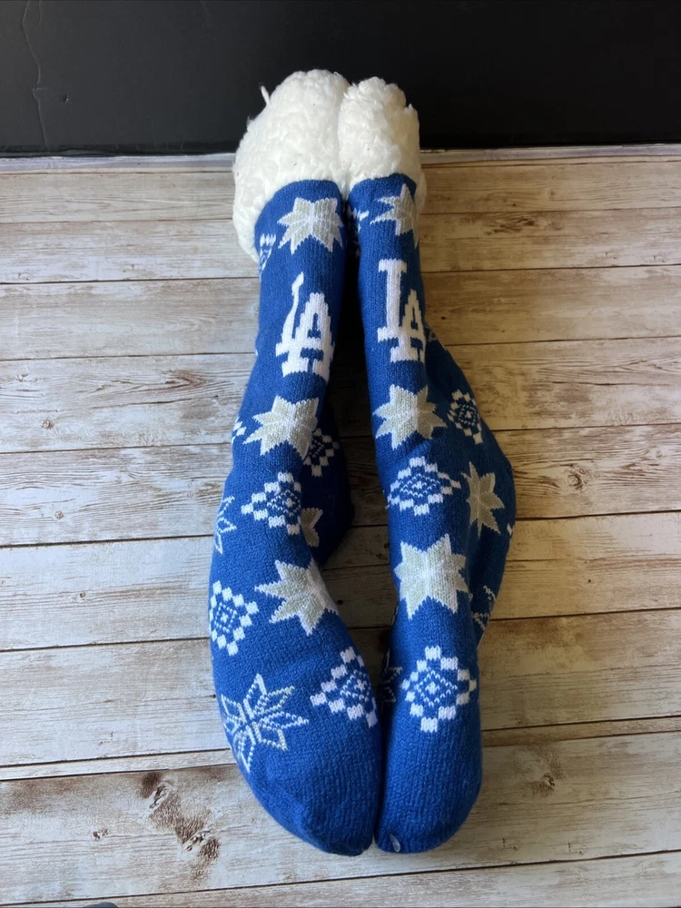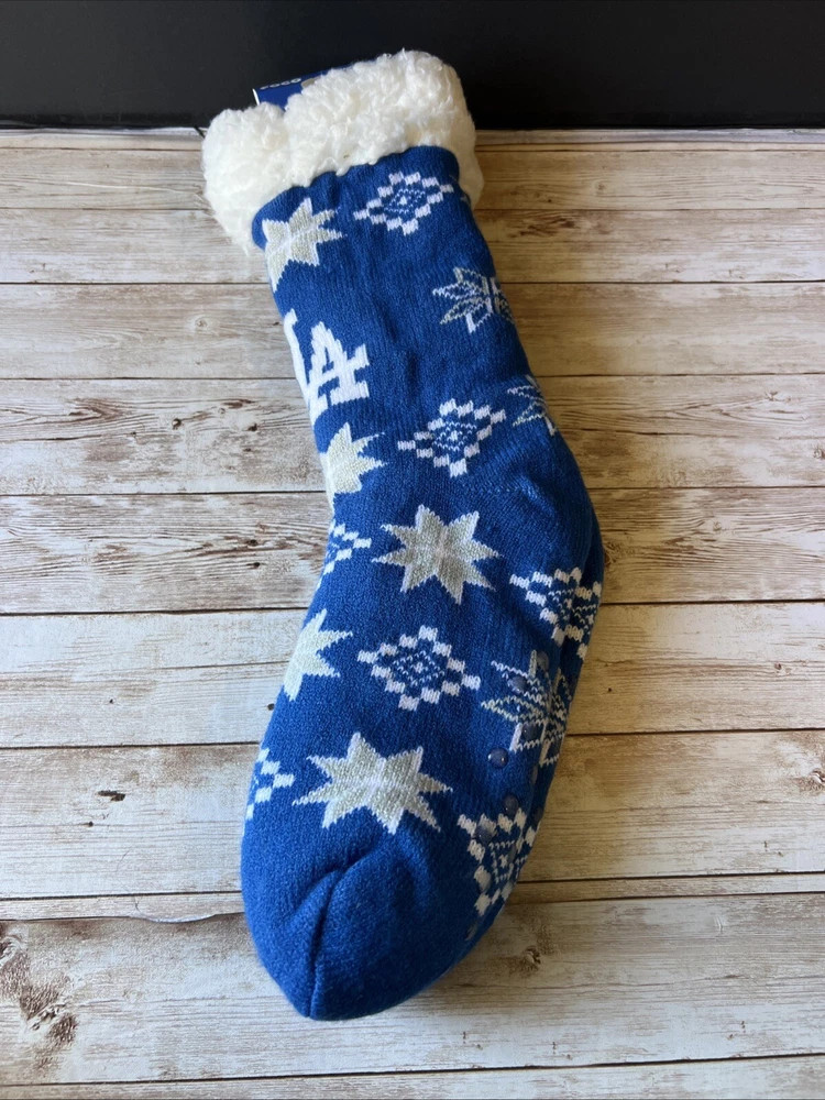 Step up your game day attire with these Los Angeles Dodgers Foco Footy Christmas Slipper Socks. Designed for women with a shoe size of 6-10, these socks are as functional as they are festive, featuring a non-skid sole to keep you comfortable and in place. The blue and white color scheme echoes the team's iconic palette, making them a perfect choice for any Dodgers supporter. Officially licensed by Major League Baseball, these socks are crafted with care by Foco, a brand known for quality and fan dedication. They're not just socks; they're a statement of loyalty to the Los Angeles Dodgers, suitable for wearing to the game or as a part of your holiday wardrobe. Keep your feet warm and your team spirit high with these unique fan accessories.