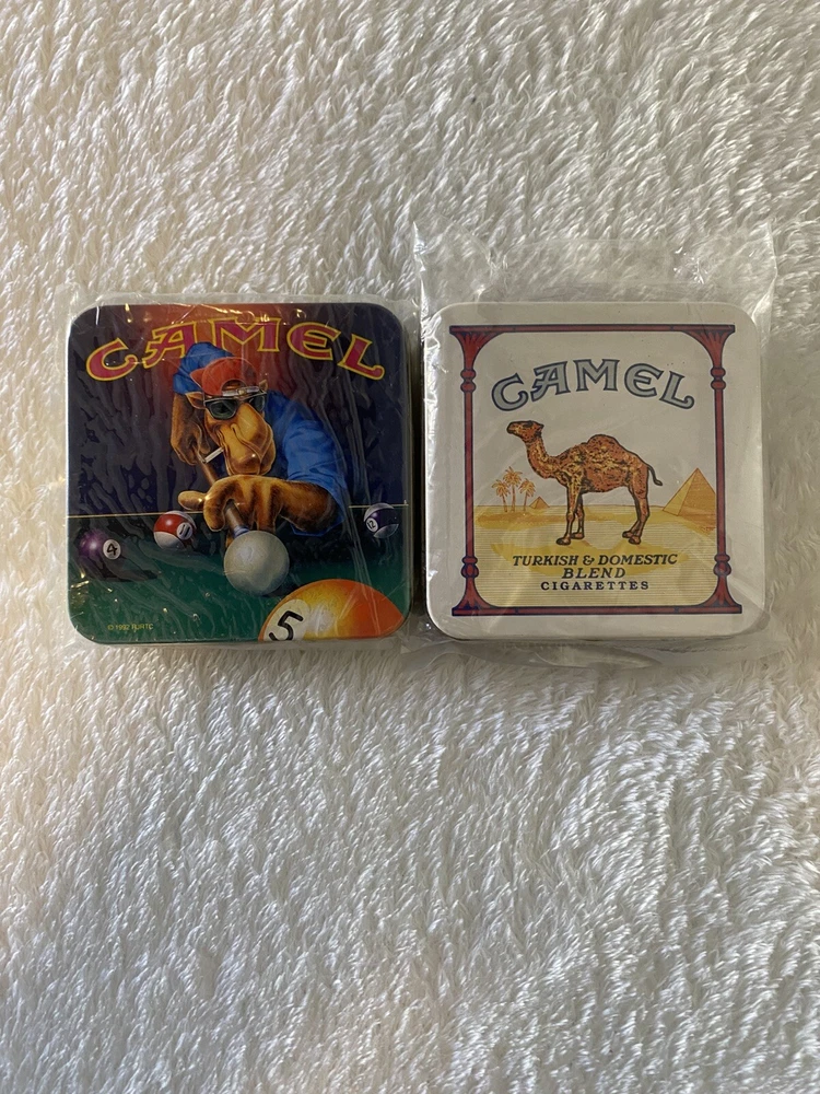 This lot includes two vintage Camel Joe metal cigarette cases. These cases are perfect for collectors of tobacco memorabilia. The brand, Camel, is known for its unique and colorful designs. These cases were manufactured in Hong Kong and are no longer in production. They are not handmade and come from a trusted source. Add these rare cases to your collection today!
