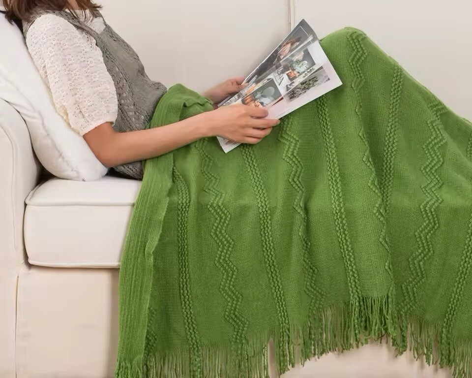 $ 13.2Farmhouse-Inspired 60" x 80" Blue Chenille Throw Blanket - Perfect for Napping