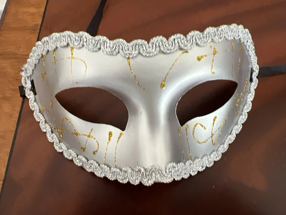 Get ready for your next masquerade event with this lot of 5 new Masquerade masks! These stunning gold and silver masks are perfect for Mardi Gras, Halloween, or any costume party. The masks have a one size fits all design and are suitable for both men and women. Each mask features intricate details and a unique design that will make you stand out from the crowd. These masks are perfect for those who want to add a touch of mystery to their costume without revealing too much. Don't miss out on this opportunity to own a set of stunning Masquerade masks!