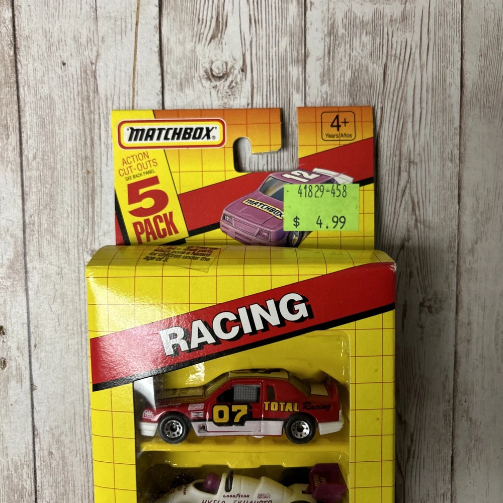 New Matchbox Racing 5 Pack 1992 Diecast Cars Action Cut Outs Good Year 060032. Condition is New. Shipped with USPS Ground Advantage.