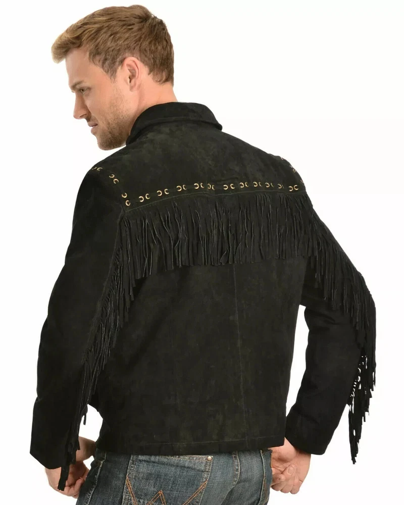 Men Black Suede Leather Jacket Fringed - Western Cowboy Style Features: Material : 100% Genuine Suede Leather Details : Accented with studded details for a bold, edgy look Colors Available : Choose from a variety of colors Fit : Comfortable fit with easy movement Closure : Front zipper closure for style and comfort. Versatile : Perfect for casual wear, concerts, festivals, and more Why Choose this Suit? We are committed to providing high-quality, unique fashion pieces that cater to those who dare to be different. Shop with us for a seamless experience and express your true self with our alternative apparel collection. Sizing Guide: Available in various sizes. Please refer to the size chart in the images for accurate measurements and choose the size that best fits you. Select the exact size before placing the order Guessing Your Size : Always take the latest and actual measurement instead of estimating. Not Taking Measurements Seriously : Incorrect sizing can result in costly exchanges. Customization: We have variety of sizes and colors. You can contact us directly for your desired Size and Color. Order Detail: 1 pc Jacket Additional Information: ü Examination: All products are carefully examined before dispatch to ensure quality. ü Return Policy: If you need to return the goods for any reason, please contact us within 30 days from the date of the order. Items must be in re-sellable condition for exchanges. All shipping costs for both returned and exchanged items will be the responsibility of the buyer. Customer Satisfaction Guaranteed We are committed to providing our customers with the highest quality products and excellent service. If you have any questions or need assistance, please do not hesitate to contact us. Your satisfaction is our priority. If any product falls below your satisfaction level, please contact us before returning the item or leaving negative feedback. We want you to be happy with your purchase and we will help you out.