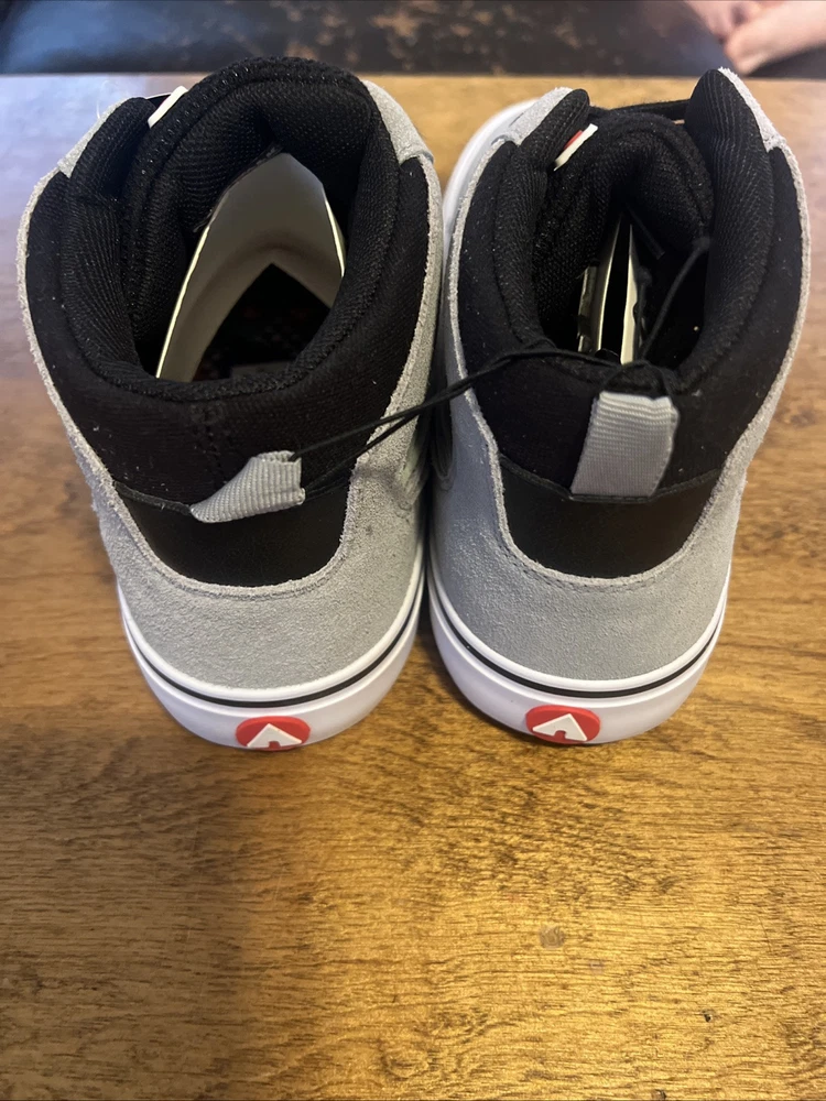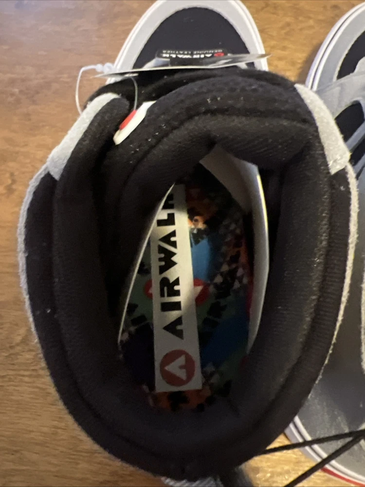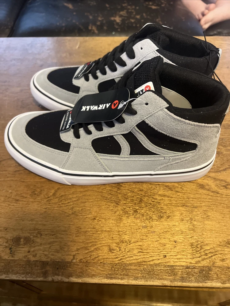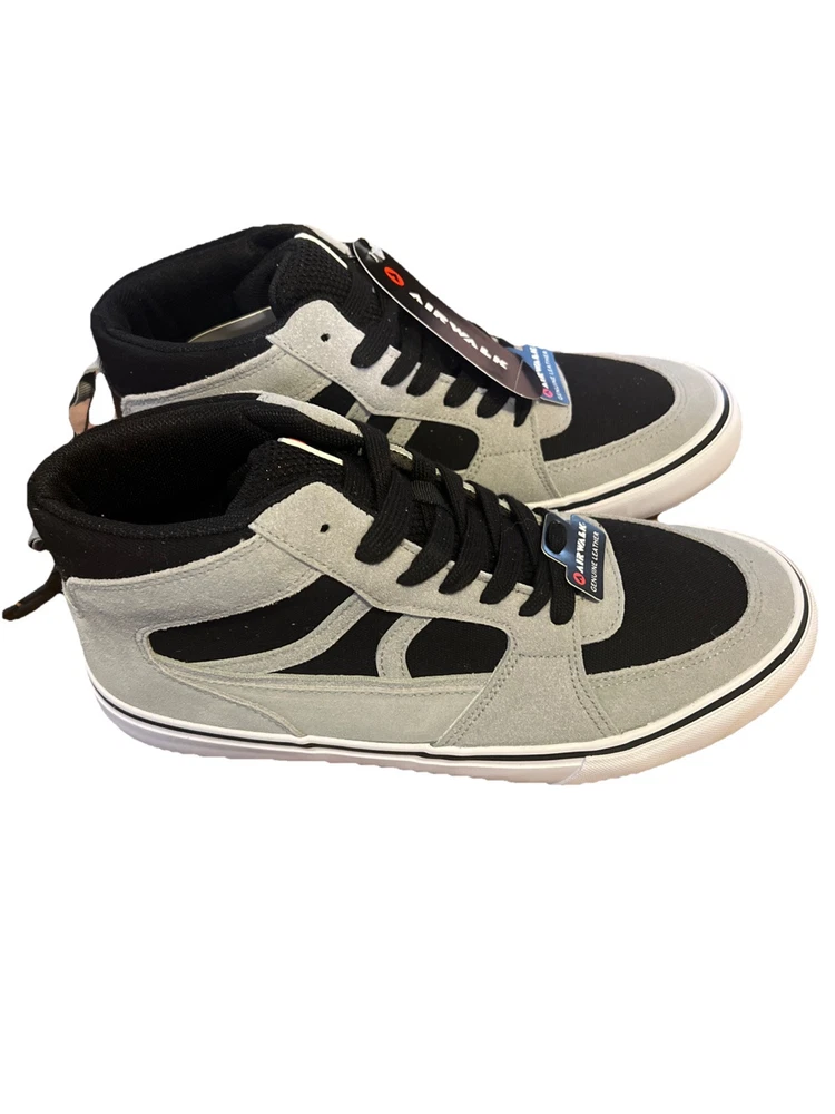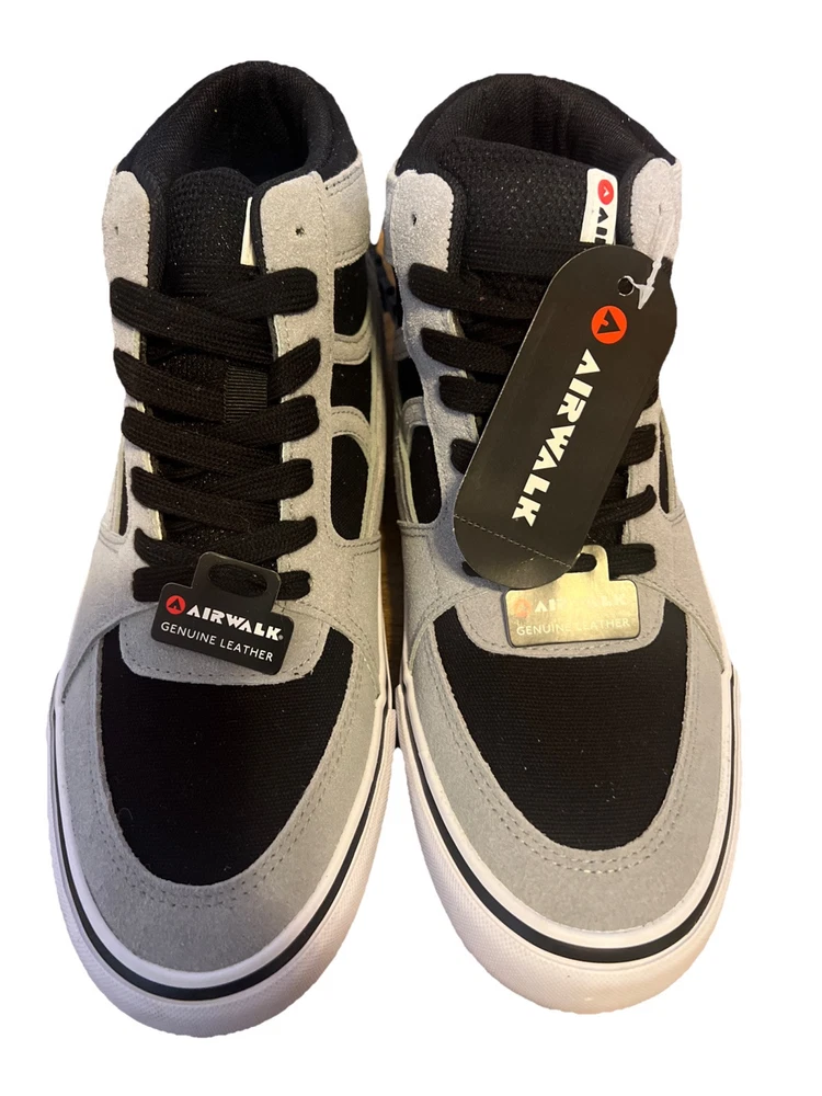 The product is a pair of men's Airwalk shoes in size 10, featuring a high-top style in a black color with gray accents. They are lace-up sneakers made of genuine leather, with a leather outsole. Perfect for casual wear, these shoes combine comfort and style for everyday use.