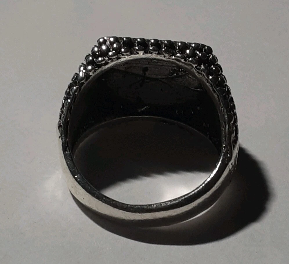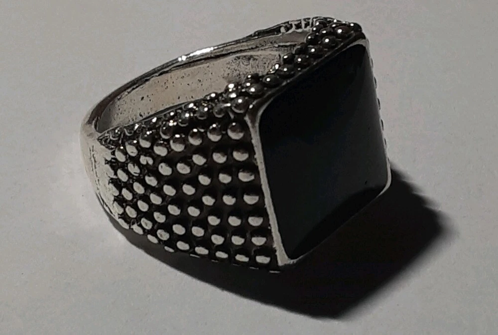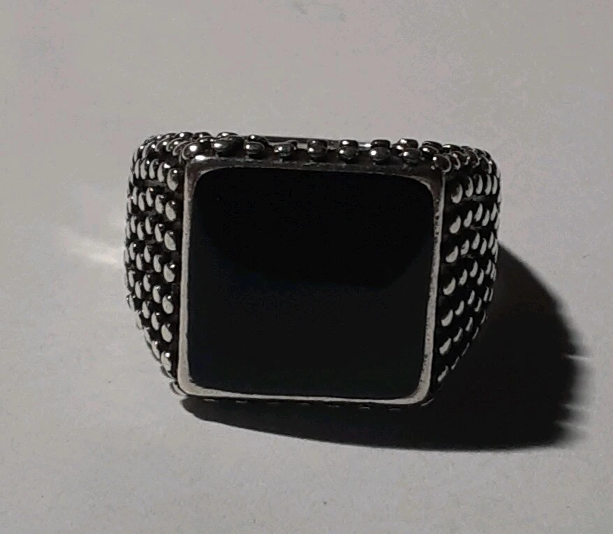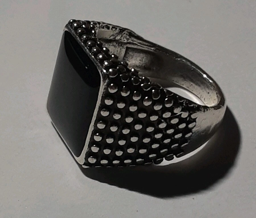 This is a new men's stainless steel black onyx beaded ring in size 10. The ring features a stylish beaded design with a black onyx stone as the main focal point.