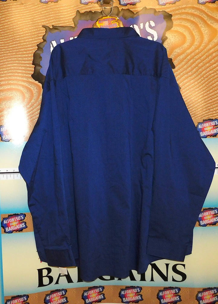 Van Heusen Long Sleeve Stain Shield Stretch Shirt. The Ultimate Stain Defense. Blocks stains before they start. Don't rub, just rinse with water. Stay put collar. Machine washable. Wrinkle Free, Easy Care. Regular Cuff Stock photos representative of style and color, not size MSRP: $70.00 This is a new men's Van Heusen Stain Shield button-up shirt with a pinstripe pattern, long sleeves, and a collared neckline. Made of 55% cotton and 45% polyester in a woven fabric, this regular fit shirt features a button-front closure and a point collar style. The shirt is priced at $19.99 CLEARANCE SALE and is designed for big and tall sizes.