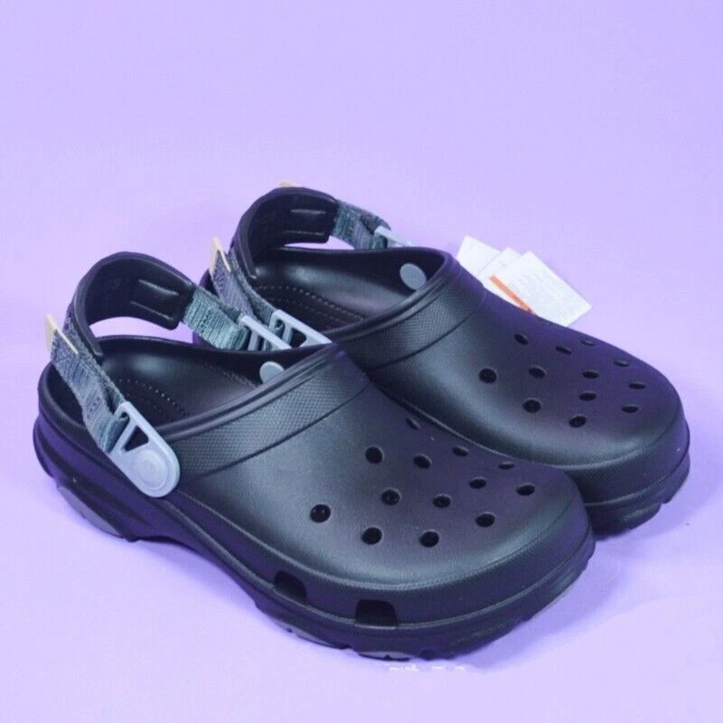 NWT Men's and Women's Classic Croc All Terrain Clogs Waterproof Slip On Shoes Comfort For The AdventureTravel. Exploration. Adventures near and far. The Classic All-Terrain Clog is ready for it all, even in the harshest environments. With a more rugged outsole and an adjustable turbo strap, the ground beneath your feet has never felt more surmountable. Lightweight Croslite™ construction makes them a practical and packable choice for any outing. It’s time to shift into all-wheel drive. Flip that strap back and go find your fun!All-Terrain Clog Details:Rugged lug outsoles with enhanced tread for increased traction and supportFully molded Croslite™ foam uppersVentilation ports add breathability and help shed waterEasy to clean and quick to dryAdjustable turbo heel straps for a snug, accommodating fitCustomizable with Jibbitz™ Lightweight. Flexible. 360-degree comfort Department Men Type Casual Occasion Casual, Travel Style unisex Clog Outsole Material Synthetic Features Ankle Strap, Comfort, Lightweight, Vegan, Waterproof Upper Material Synthetic