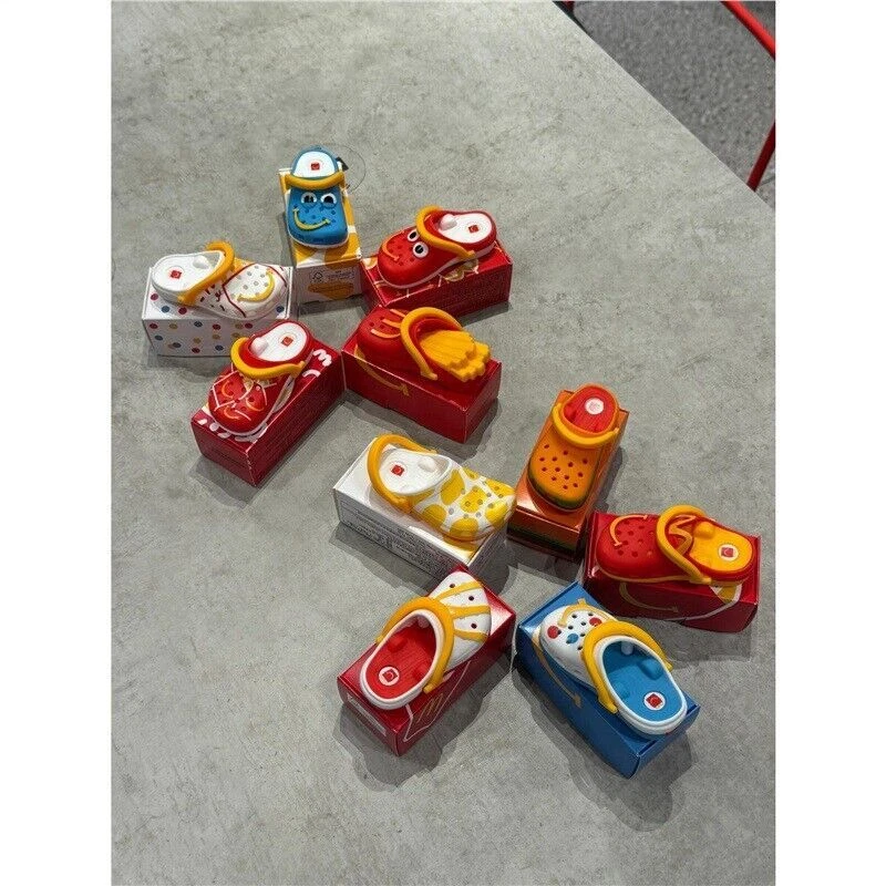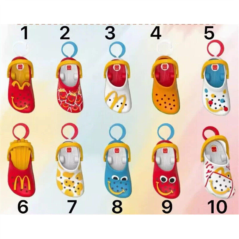 2024 McDonald's Mini Crocs Keychain Happy Meal Toys Completed Set 10 PCS size: about 7-8cm Each keychain includes box and sticker Please note that the shipping process may cause the box to deform slightly, if you can't accept this, please don't buy!