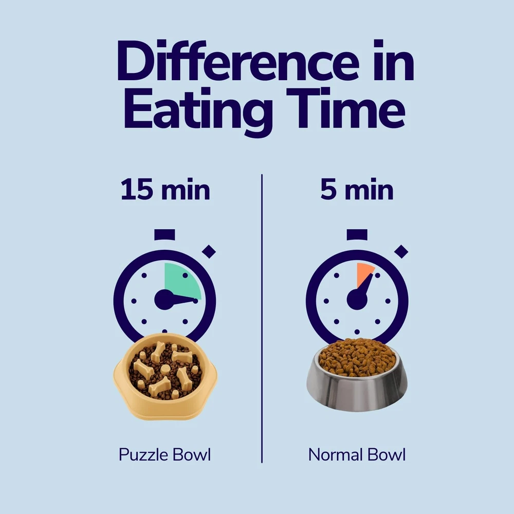 Combat fast eating with our slow feeder dog bowls! This dog slow feeder bowl encourages slower eating, preventing bloat and improving digestion. A slow feeder, it's perfect for any breed. Our dog bowl slow feeder and dog slow feeder design transforms mealtime into a fun dog puzzle feeder. Choose the right size for your pet with our slow feeder dog bowls small breed, and puppy slow feeder bowl selections. The dog food puzzle challenges your dog to work for their food while reducing gulping. This dog bowls slow feeder promotes healthier eating habits, and can be used with dog food bowl slow feed or even wet food. Forget boring bowls, this is the ideal slow eating dog bowl and dog bowls that slow down eating solution. Our small slow feeder dog bowls and slow feeder dog bowls puppy help pups eat at a healthier pace. This food puzzle for dogs is available as a puzzle feeder or maze dog food bowl design. A dog feeder puzzle makes mealtime more engaging! The perfect dog feeding bowl and puzzle dog bowl allows for better digestion and longer feeding time. The slow feeding dog bowl also features a puzzle bowl dog feeder design. We have dog maze food bowl options in addition to classic designs. These dog dishes to slow down eating prevent gulping. Enjoy our selection of dog puzzle bowl and dog food slow feeder bowl designs. If you have a dog slow feeder bowl small breed or a slow eater dog food bowl they will benefit. Browse our slow feeders and slow feeders for dogs to find the right fit. We have dog food bowls slow feeder, dog bowl for fast eaters, and small dog slow feeder choices. Our slow feeder for small dogs is ideal for tiny mouths. A puzzle bowl for dogs is a great way to add fun and mental stimulation to their daily routine. The dog slow feeder helps your dog enjoy mealtime longer. The puppy food puzzle is designed specifically for small mouths. We have puzzle feeders for dogs and an enrichment bowl for dogs line! Our slow feed dog bowls designs help avoid SLOWS DOWN EATING - Best suited for small to medium-sized dogs. The maze design effectively slows down eating for all food types, ensuring a healthier and more satisfying mealtime for your pet. Ideal for dog owners seeking a versatile and effective solution to slow feeding and improving digestion in their pets. Our slow-feeder dog bowls are designed to accommodate various types of dog food, including kibble, wet food, and even homemade recipes GOOD FOR FAST EATERS, PUPPIES, and ADULTS of ALL DOG BREEDS - Our slow-feeder dog bowls are suitable for puppies, small, medium, and large-sized dogs, making it an ideal choice for all dog owners. The puzzle design accommodates all dog breeds, ensuring a healthier and more enjoyable eating experience for your furry friend, while also preventing inhalation, choking, bloating, and overeating INTERACTIVE & BRAIN DEVELOPING DESIGN - The fun maze design of our slow feeder dog bowl not only helps to slow down your pet's eating but also turns mealtime into a playful and engaging experience. This interactive puzzle feeder promotes mental stimulation and brain development, making it an excellent choice for dog owners who want to keep their pets entertained and challenged while they eat NON-SLIP DESIGN FOR STABILITY - Our dog slow feeder bowl features a non-slip design to keep it stable and in place during mealtime, preventing spills and messes. Suitable for small to medium-sized dogs, this slow-feeder dog bowl ensures a comfortable and enjoyable eating experience for your pet EASY TO CLEAN & DISHWASHER SAFE - Made with high-quality, durable materials, our dog food slow feeder bowl is easy to clean and dishwasher safe, ensuring a hassle-free and long-lasting feeding experience for your pet. Perfect for dog owners who value convenience and efficiency in their pet products Puzzle bowls may not be an ideal choice for dogs with shorter snouts or flat faces, as it can be difficult for them to use.