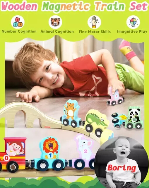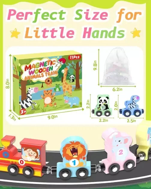 New Montessori Toys for 1 2 3 Years Old Boys Girls Birthday Gifts US Warehouse - FREE & FAST Shipping in USA Product Description: FUN MONTESSORI TOYS: The montessori toys contain 11 pieces (a monkey engine with animal train cars form number 0 to 10) magnetic train set and a storage bags. chunky wooden pieces to ensure tiny hands can easily grasp the pieces. Greatly encourage the development of your toddler's hand-eye coordination and attention span. SAFE AND WELL-MADE: Made with high quality, non-toxic wood materail and water-based paint, this learning toys can last for years. The storage bag provided is easy to collect store and carry after playing. The edges of wooden train cars are smooth , it keeps your 1 2 3 years old plus boys and girls play safely. LEARNING THROUGH PLAY: While conneting the animal trains, children need to sit and balance core muscles to move hands freely and figure out the train cars in order. Strong magnetic makes sure your little ones connect freely. This kind of activity can attract their attention and interest, which can keep your kids engaged for hours. Makes a great gift for hands-on, screen-free play. IDEAL GIFTS FOR TODDLERS : Are you still hesitated to choose birthday, stocking stuffers or Christmas gifts for the little ones? This montessori toys for toddlers 1-3, 2-4 years is definitely the amazing choice that you won't regret! Feedback: 1.Any question for your order, please contact us in time, we will reply to you within 24-48 hours and give you a satisfactory answer. 2.If you are satisfied with our products and services, hope to take up a little precious time to leave feedback reviews for our products.Thanks! 3.Your satisfaction is our effort. Welcome to order again! Have a great day! Our Policy: 100% Satisfaction Guarantee 30 Days Return and Refund Guarantee Free and Fast Shipping in USA, US Warehouse 15% of restocking fee will be charged for return it