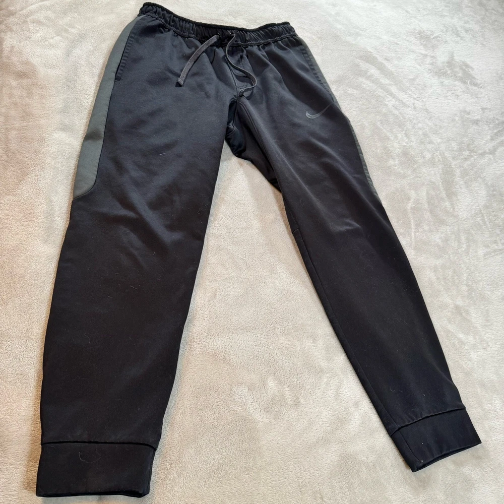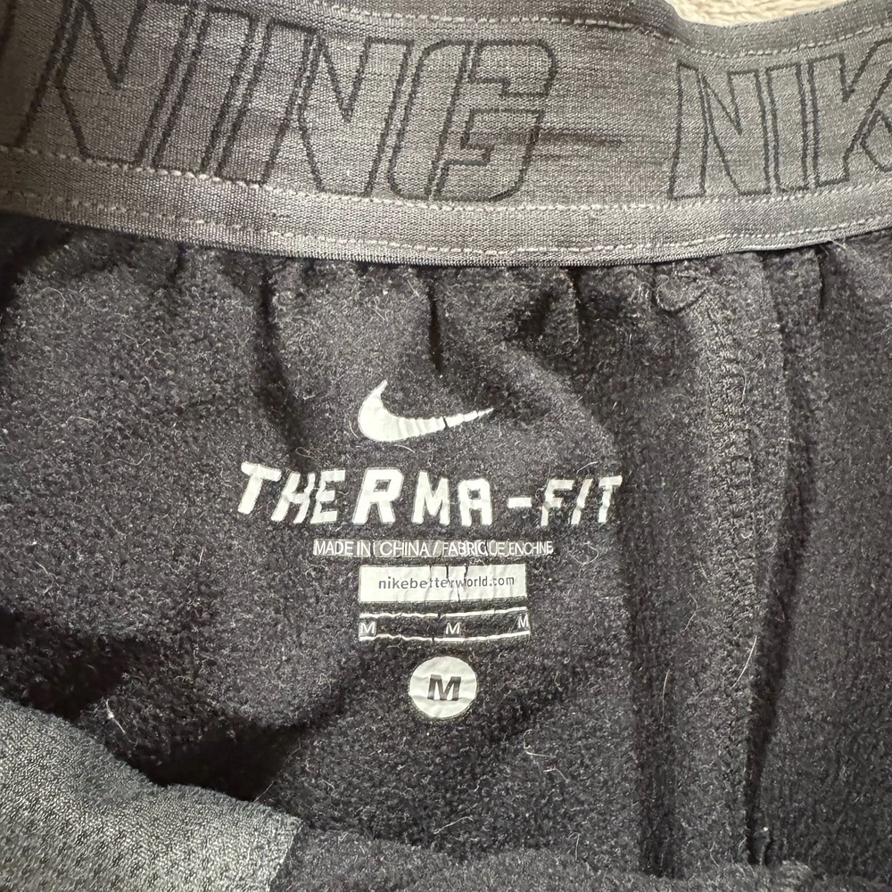 Elevate your workout game with these brand new Nike Therma Fit Training Joggers. Designed with a pull-on closure for easy wear, these tapered leg pants are perfect for any season with their lightweight, moisture-wicking, and breathable features. The pants also come with pockets for added convenience and are machine washable for easy care. Ideal for both activewear and casual wear, these black pants are made of polyester with a solid pattern and Nike branding. The pants are perfect for athleisure, with a compression level of moderate and a waist compression area. These pants are from the Nike Therma product line and are in a size medium (M).