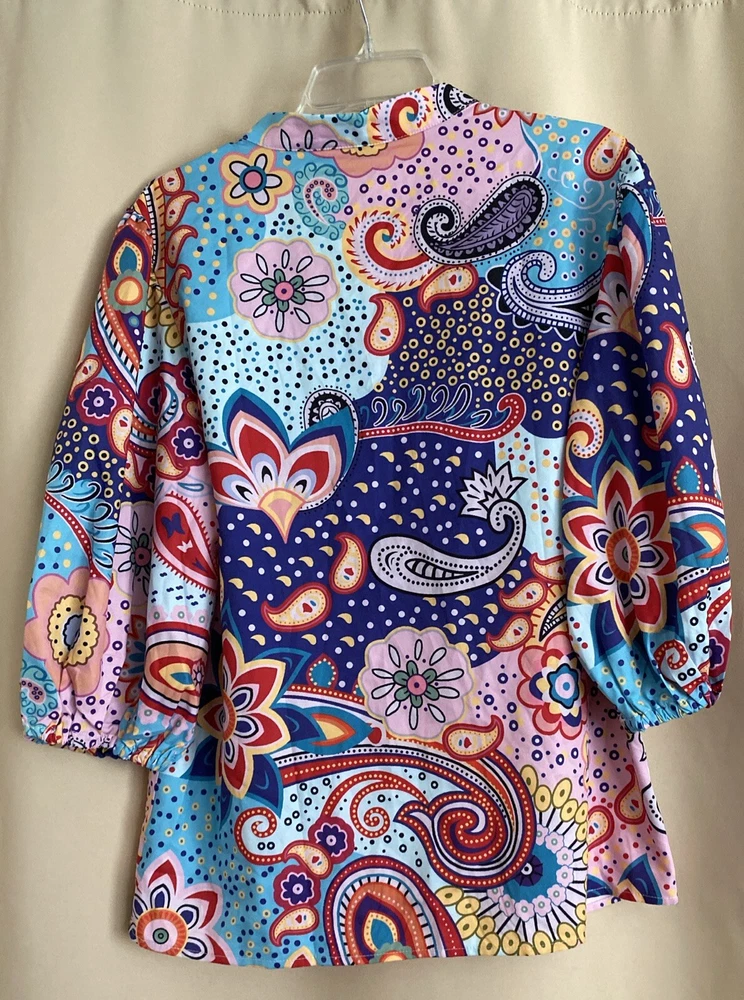 This Noracora blouse is a vibrant addition to any wardrobe. The colorful floral pattern is perfect for any occasion, whether it's a casual day out or a business meeting. The blouse features a round neckline and 3/4 sleeves, making it versatile for all seasons. Made of lightweight polyester, this blouse is easy to care for with hand wash/dry clean instructions. The regular fit is flattering and comfortable, while the multicolor design adds a touch of fun to any outfit. This blouse is perfect for those who love flowers and colorful patterns.