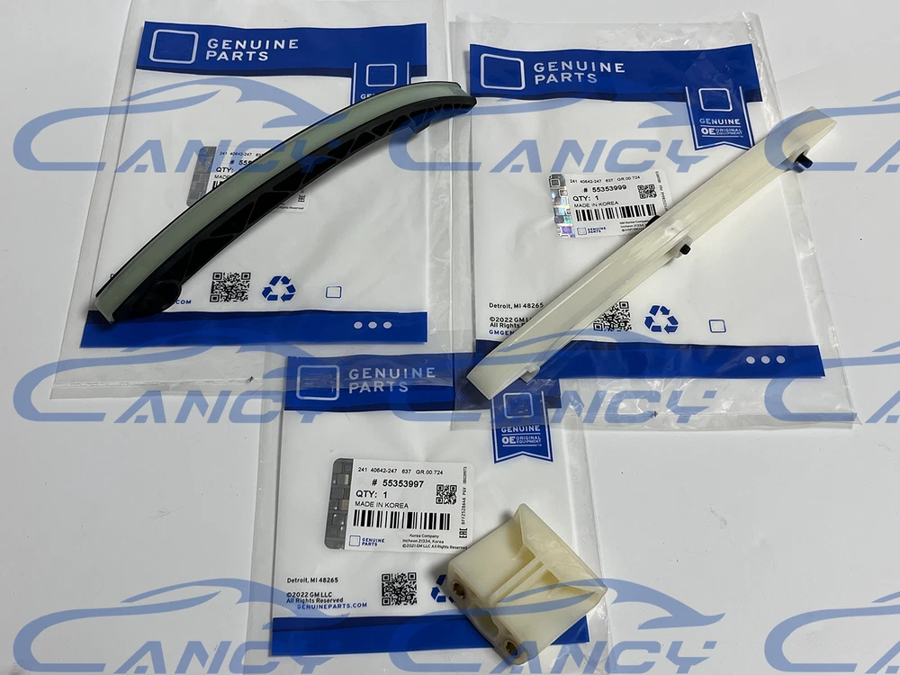 New OEM Timing Chain Kit VVT for 11-21 Chevrolet Cruze Trax Buick Encore 1.4L New OEM Timing Chain Kit VVT for 11-21 Chevrolet Cruze Trax Buick Encore 1.4L Car Application: 2013-2020 Buick Encore 1.4L 2011-2015 Chevrolet Cruze 1.4L 2016 Chevrolet Cruze Limited 1.4L 2012-2020 Chevrolet Sonic 1.4L 2013-2021 Chevrolet Trax 1.4L This Item Includes: 1 Timing Chain (130 link) 1 Cam Sprocket (20T) 2 Engine Variable Valve Timing Sprockets (40T) 3 Guides 1 Tensioner Bolts Purchase Notes: Dear customers, before placing an order, please check the item information carefully to confirm that it is suitable for your car. If you are not sure, please provide us with the Vehicle Identification Number/VIN number and picture of the original part . Thank you!!