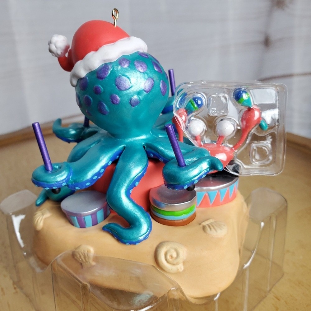 New Open Box Hallmark Keepsake 2022 Festive Octopus Christmas Musical Ornament -Colorful crab and octopus playing drums -plays Jingle Bells -batteries not included -Artist - Sharon Visker -Size 3.88''x3.31" Measurements in photos. Same day / next day shipping Offers accepted Like for price drops and deals Bundle 2 items or more and save! Thank you! 1lb CH