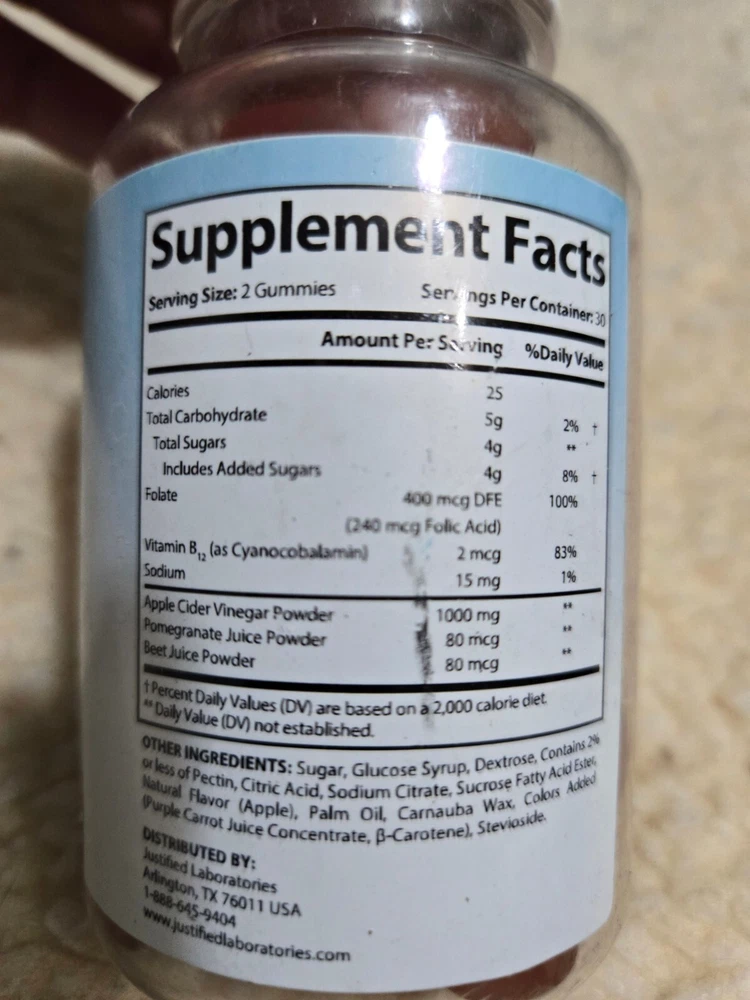 Type of Diet:KetoBrand:OptimalIngredients:Apple Cider Vinegar, Vitamin B12, Folate, Pomegranate Juice, Beet Juice PowderType:SupplementExpiration Date:9/2025Number of Pills:60Formulation:GummyMain Purpose:General Wellness, Sports and Fitness Performance, Weight Loss, Weight ManagementFeatures:Alcohol Free, All Natural, Animal Cruelty-Free, Gluten-FreeDepartment:Men, Unisex, Women
