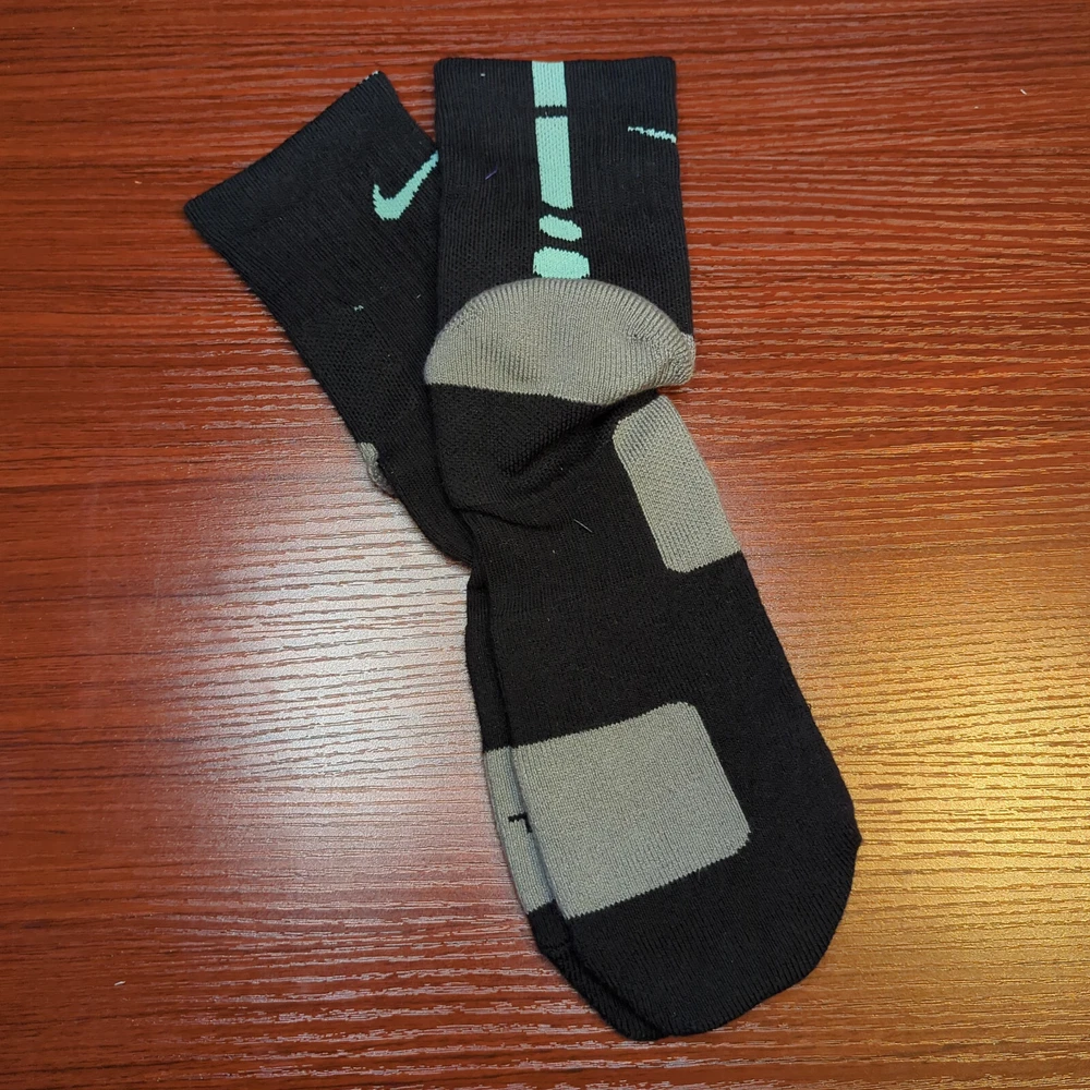 Original Nike Elite Quarter Cut Socks (Black/Mint Green) Size XL Brand new without tags 100% Authentic Ships in 1-2 business days from Illinois Many other colors available, check out my page to see them all The Nike Elite Basketball Crew Socks feature Dri-Fit fabric that keeps your feet cool and comfortable. It’s made for durability and offers a supportive and snug fit. The Nike Elite Basketball Crew Sock is a must own for any basketball player. Performance basketball crew socks deliver superior fit and comfort. Strategically placed cushioning absorbs impact Dri-Fit technology helps keep feet feeling dry and comfortable. Left/right anatomical design for targeted comfort. Ventilation zones promote breath-ability to keep you cool 63% polyester, 18% nylon, 16% cotton, 3% spandex Size Guide Small: Youth 4-6 Medium: Men's 6-8 Large: Men's 8-12 Extra Large: Men's 12-15