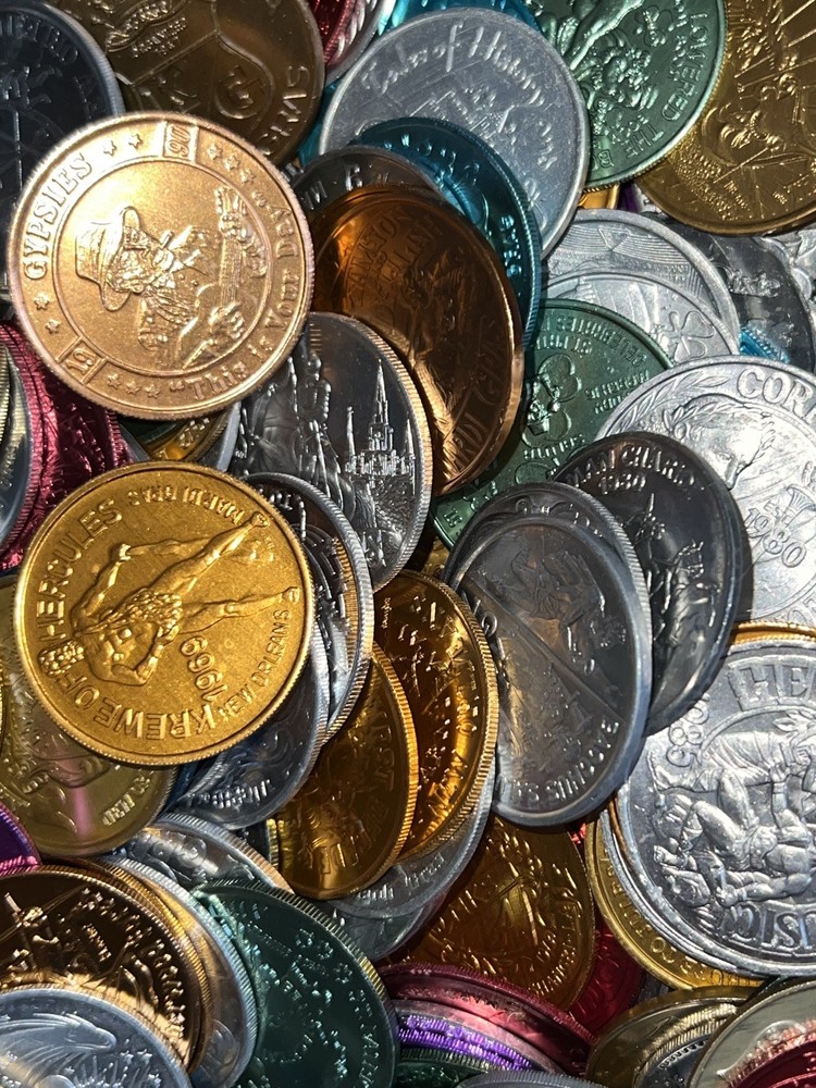 New Orleans Estate Sale find. I have 1000’s unsearched Doubloons that must go! These run from the 1960s through present time. Each lot sold will be randomly picked and shipped.