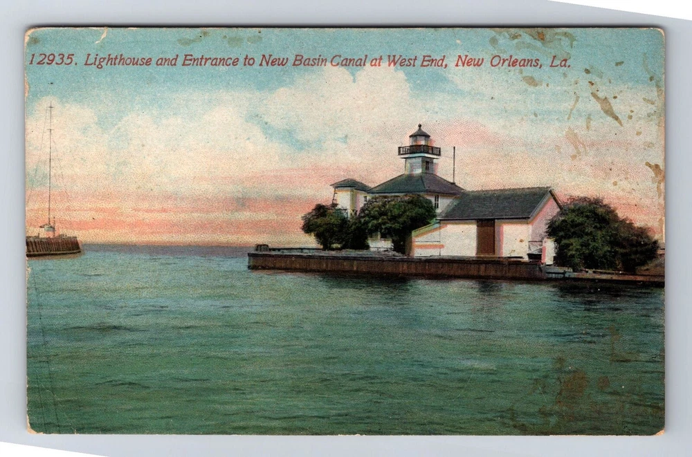 New Orleans LA-Louisiana, Lighthouse, Entrance New Basin Canal Vintage Postcard