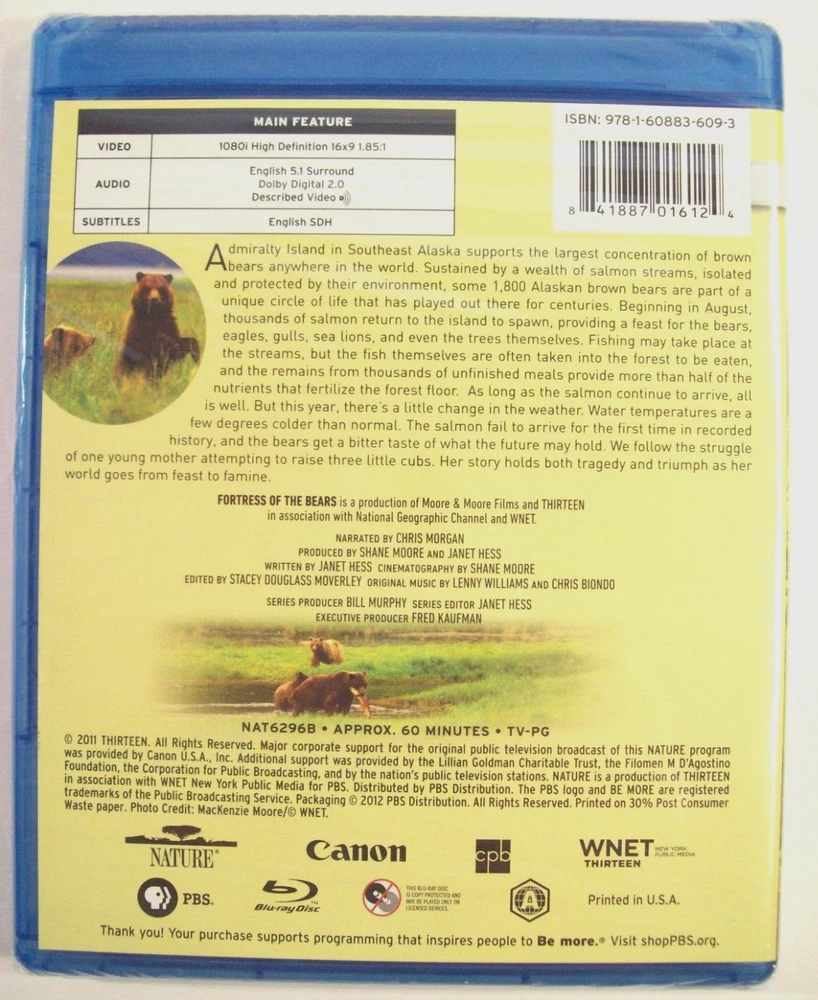 Format:Blu-rayGenre:Educational, Special Interest-NatureStudio:PBSVideo Format:NTSCgtin13:does not applyRegion Code:Blu-ray: A (Americas, Southeast Asia...)Movie/TV Title:Fortress of the BearsUPC:does not applyType:DocumentaryRelease Year:2011Rating:PGCase Type:Blu-ray CaseLanguage:English