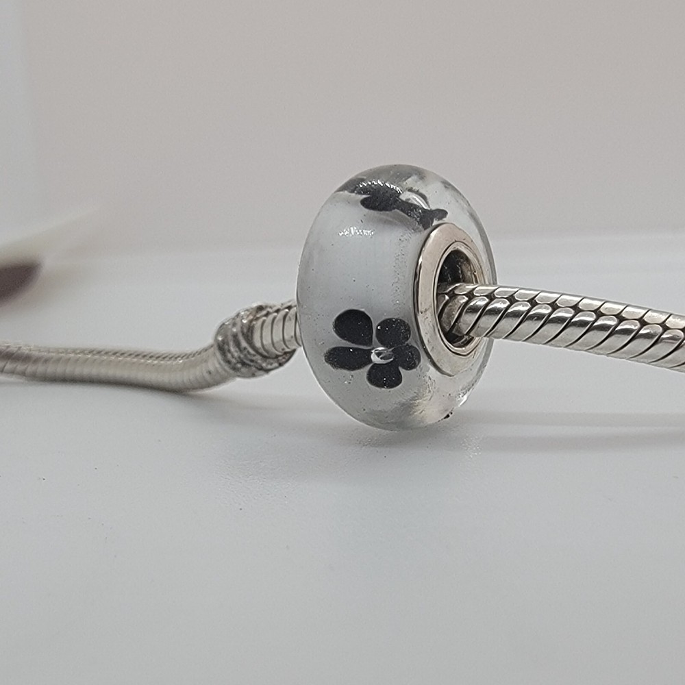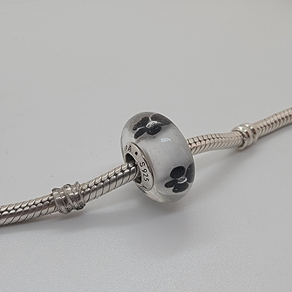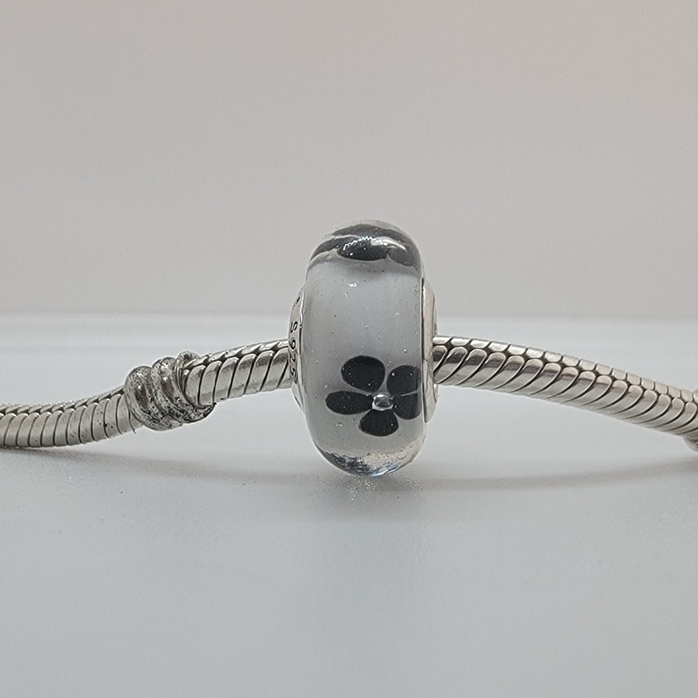 New Pandora Authentic Black Cherry Flower Murano Charm The charms are new, never worn. Some charms are used for pictures and advertising purposes only. All charms come in Jewelry Pouch with Pandora logo on it. Bracelet and Box NOT INCLUDED.