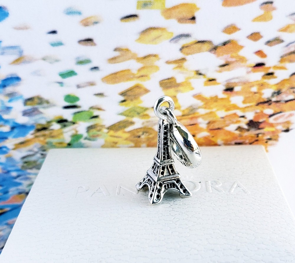 New Pandora Authentic Eifel Tower Dangle Charm The charms are new, never worn. Some charms are used for pictures and advertising purposes only. All charms come in Jewelry Pouch with Pandora logo on it. Bracelet and Box NOT INCLUDED.