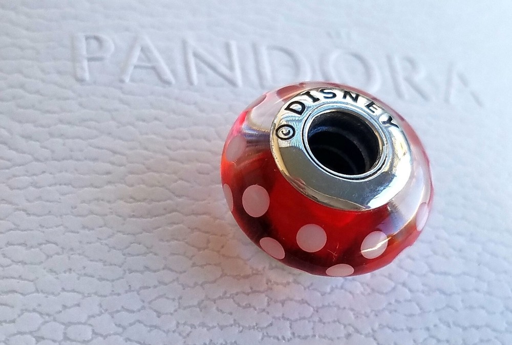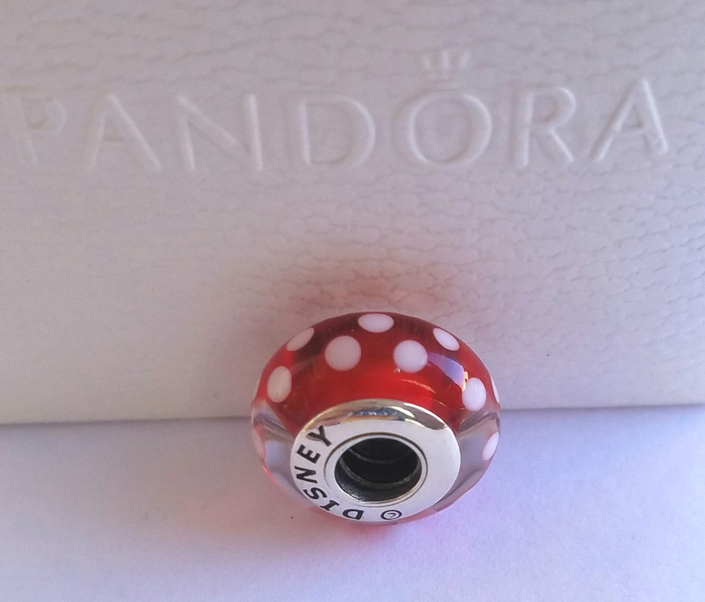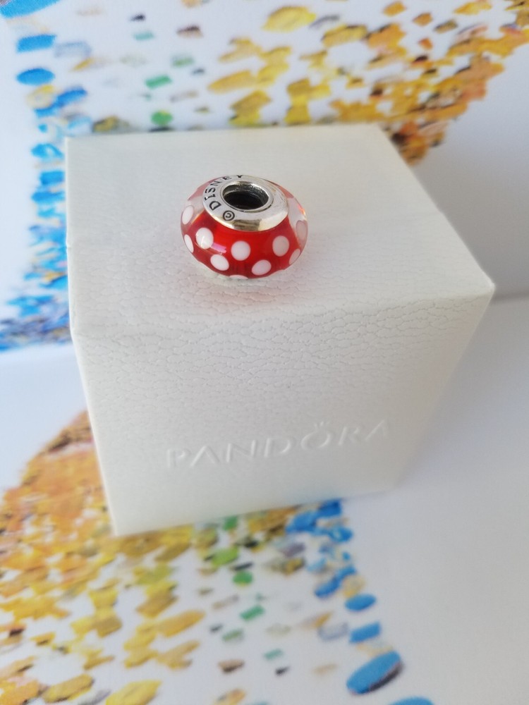 New Pandora Authentic Disney Minnie Mouse Polka Dot Murano Charm The charms are new, never worn. Some charms are used for pictures and advertising purposes only. All charms come in Jewelry Pouch with Pandora logo on it. Bracelet and Box NOT INCLUDED.